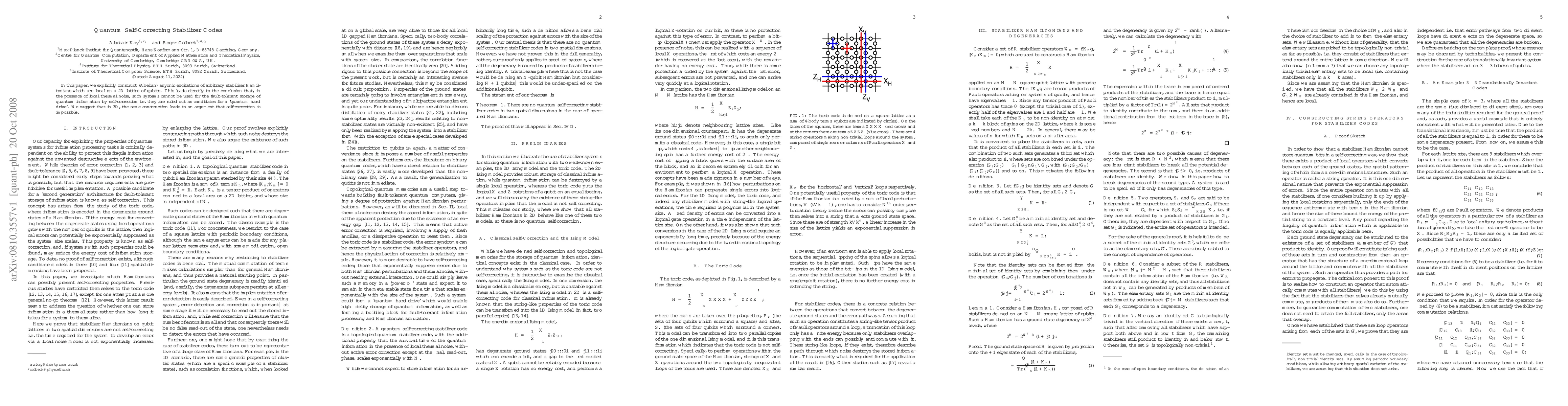 In this paper, we explicitly construct (Abelian) anyonic excitations of arbitrary stabilizer Hamiltonians which are local on a 2D lattice of qubits. This leads directly to the conclusion that, in the presence of local thermal noise, such systems cannot be used for the fault-tolerant storage of quantum information by self-correction i.e. they are ruled out as candidates for a `quantum hard drive'. We suggest that in 3D, the same construction leads to an argument that self-correction is impossible.