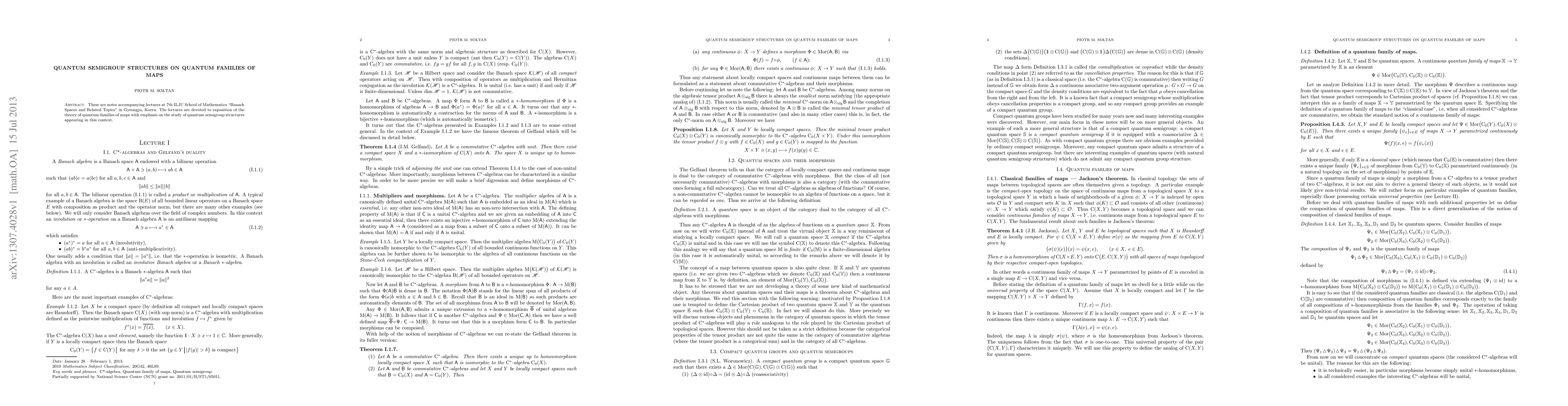 Summary: This paper presents lectures on the theory of quantum families of maps, focusing on the quantum semigroup structures that emerge within this framework, as part of the 7th ILJU School of Mathematics in Gyeongju, Korea. The study aims to elucidate these structures' implications and applications.