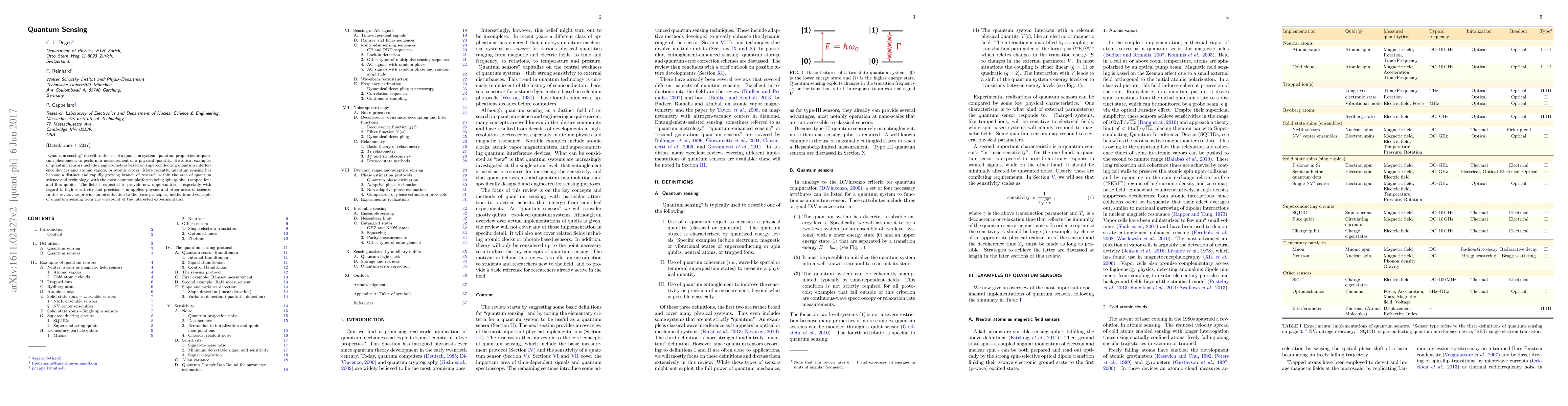 "Quantum sensing" describes the use of a quantum system, quantum properties or quantum phenomena to perform a measurement of a physical quantity. Historical examples of quantum sensors include magnetometers based on superconducting quantum interference devices and atomic vapors, or atomic clocks. More recently, quantum sensing has become a distinct and rapidly growing branch of research within the area of quantum science and technology, with the most common platforms being spin qubits, trapped ions and flux qubits. The field is expected to provide new opportunities - especially with regard to high sensitivity and precision - in applied physics and other areas of science. In this review, we provide an introduction to the basic principles, methods and concepts of quantum sensing from the viewpoint of the interested experimentalist.