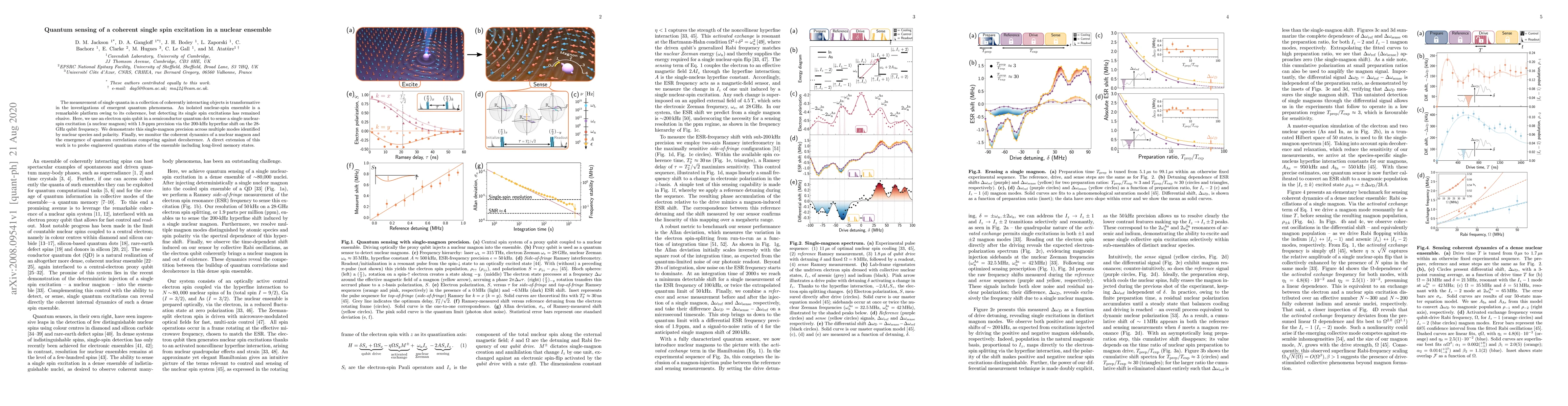 This paper reports the successful detection of a single nuclear-spin excitation (nuclear magnon) using an electron spin qubit in a semiconductor quantum dot, achieving 1.9-ppm precision. The study also observes the coherent dynamics and quantum correlations of the nuclear magnon, paving the way for probing engineered quantum states of nuclear ensembles.