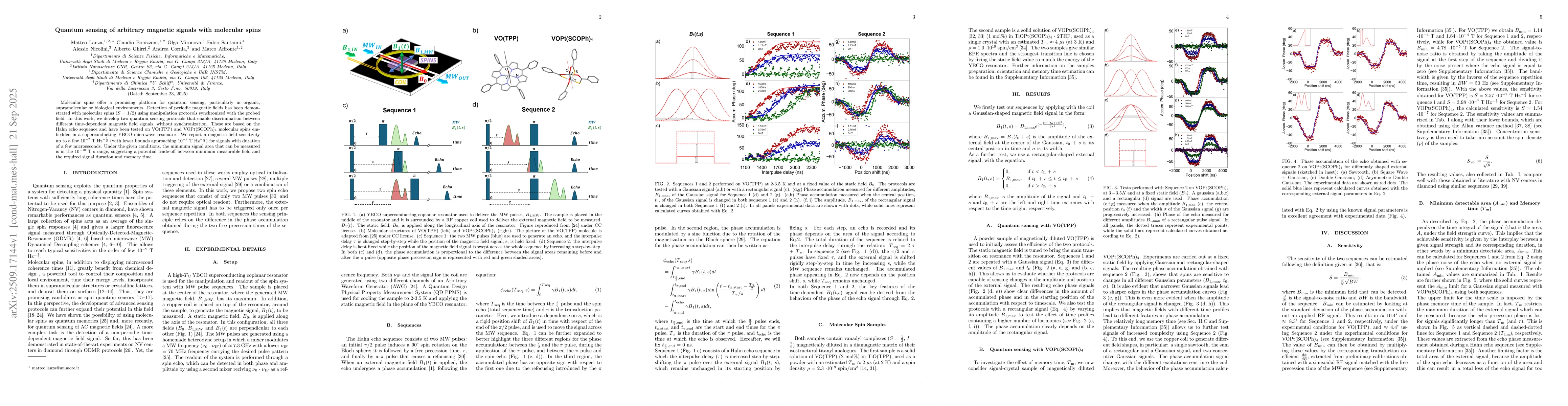 The study employed a combination of quantum sensing techniques using molecular spins and advanced signal processing methods to measure magnetic fields with high precision. The researchers utilized Hahn echo sequences and analyzed phase accumulation to extract information about external magnetic fields.