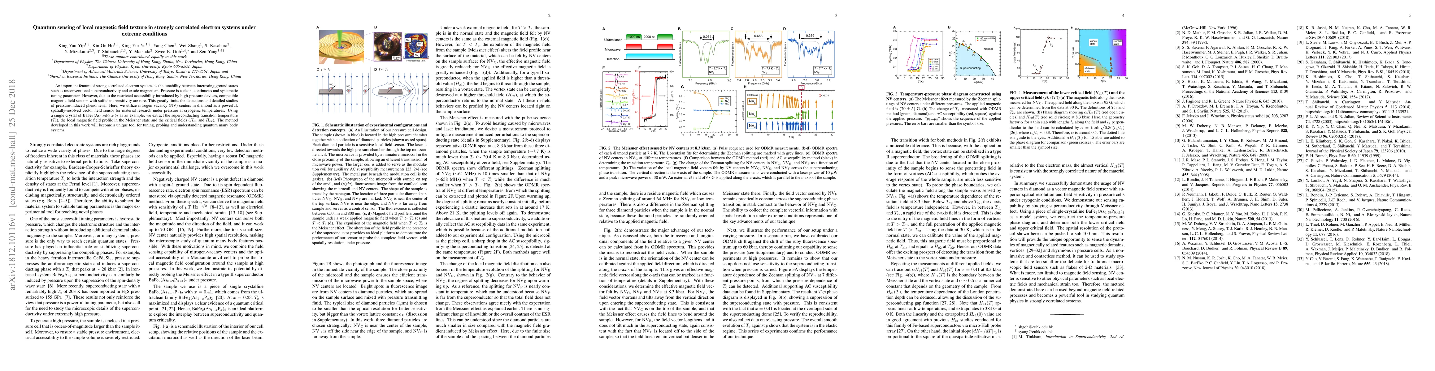 An important feature of strong correlated electron systems is the tunability between interesting ground states such as unconventional superconductivity and exotic magnetism. Pressure is a clean, continuous and systematic tuning parameter. However, due to the restricted accessibility introduced by high-pressure devices, compatible magnetic field sensors with sufficient sensitivity are rare. This greatly limits the detections and detailed studies of pressure-induced phenomena. Here, we utilize nitrogen vacancy (NV) centers in diamond as a powerful, spatially-resolved vector field sensor for material research under pressure at cryogenic temperatures. Using a single crystal of BaFe2(As0:59P0:41)2 as an example, we extract the superconducting transition temperature (Tc), the local magnetic field profile in the Meissner state and the critical fields (Hc1 and Hc2). The method developed in this work will become a unique tool for tuning, probing and understanding quantum many body systems.