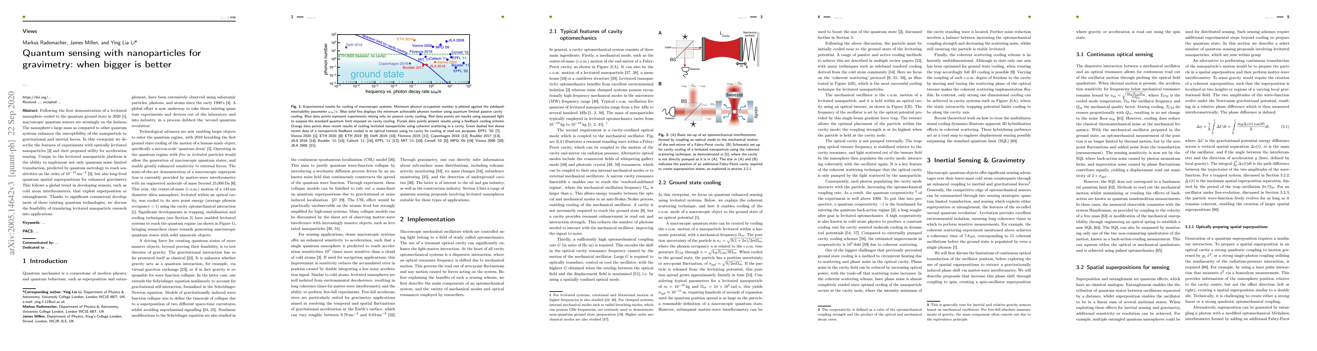 Following the first demonstration of a levitated nanosphere cooled to the quantum ground state in 2020 [1], macroscopic quantum sensors are seemingly on the horizon. The nanosphere's large mass as compared to other quantum systems enhances the susceptibility of the nanoparticle to gravitational and inertial forces. In this viewpoint we describe the features of experiments with optically levitated nanoparticles [2] and their proposed utility for acceleration sensing. Unique to the levitated nanoparticle platform is the ability to implement not only quantum noise limited transduction, predicted by quantum metrology to reach sensitivities on the order of $10^{-15}$ms$^{-2}$ [3], but also long-lived quantum spatial superpositions for enhanced gravimetry. This follows a global trend in developing sensors, such as cold-atom interferometers, that exploit superposition or entanglement. Thanks to significant commercial development of these existing quantum technologies, we discuss the feasibility of translating levitated nanoparticle research into applications.