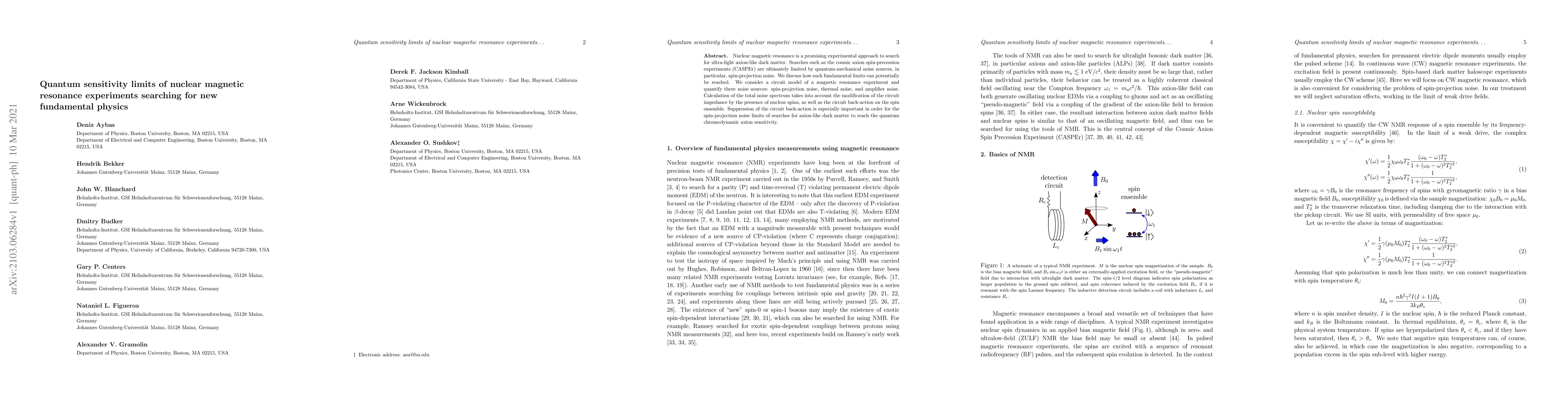 Nuclear magnetic resonance is a promising experimental approach to search for ultra-light axion-like dark matter. Searches such as the cosmic axion spin-precession experiments (CASPEr) are ultimately limited by quantum-mechanical noise sources, in particular, spin-projection noise. We discuss how such fundamental limits can potentially be reached. We consider a circuit model of a magnetic resonance experiment and quantify three noise sources: spin-projection noise, thermal noise, and amplifier noise. Calculation of the total noise spectrum takes into account the modification of the circuit impedance by the presence of nuclear spins, as well as the circuit back-action on the spin ensemble. Suppression of the circuit back-action is especially important in order for the spin-projection noise limits of searches for axion-like dark matter to reach the quantum chromodynamic axion sensitivity.