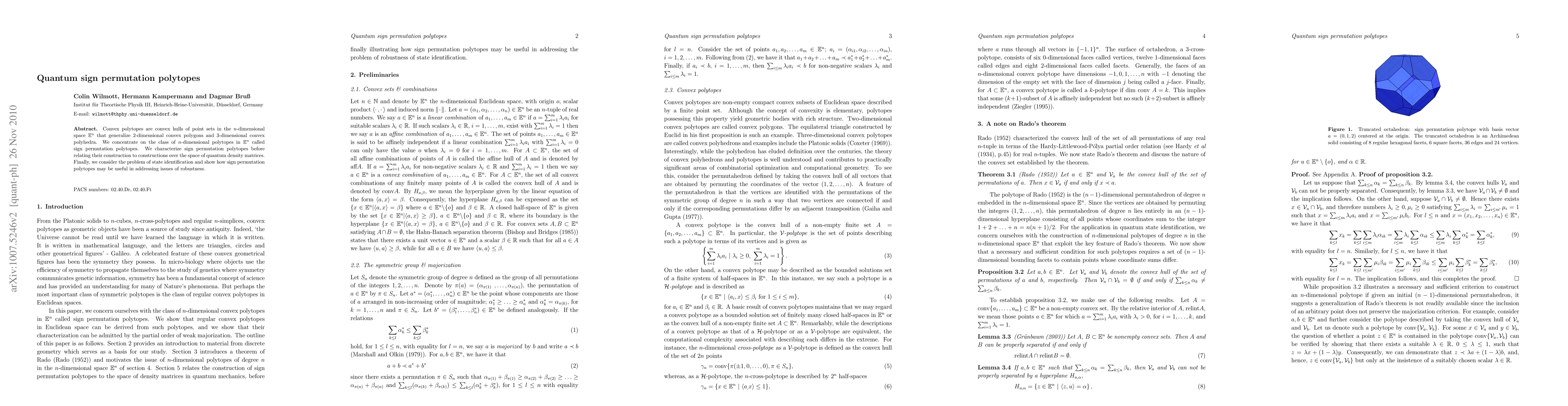 Summary: This paper characterizes $n$-dimensional sign permutation polytopes and explores their construction in relation to quantum density matrices, highlighting their potential in addressing robustness in state identification problems.