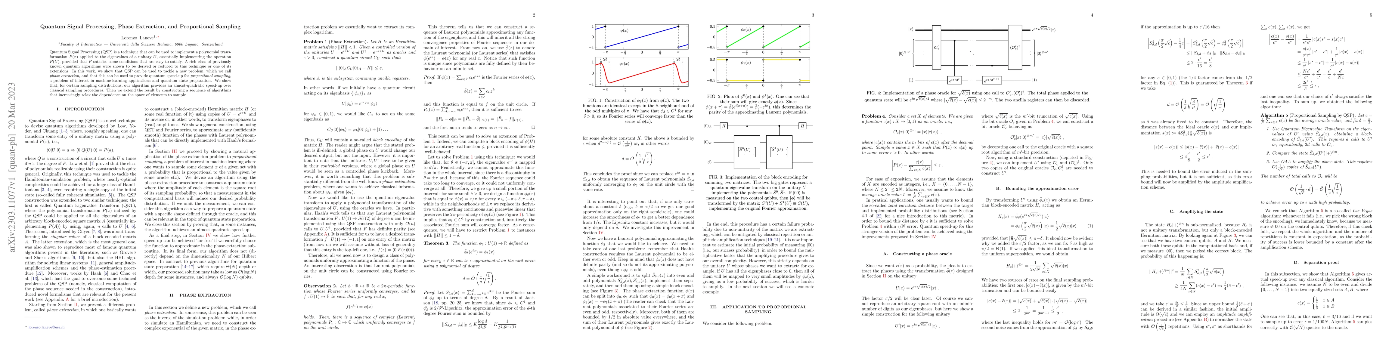 This paper introduces Quantum Signal Processing (QSP) to solve the phase extraction problem, achieving a quantum speed-up for proportional sampling, which is beneficial for machine learning and quantum state preparation. The authors demonstrate an almost-quadratic speed-up over classical methods for specific sampling distributions and propose a series of algorithms that reduce the dependency on the sample space.
