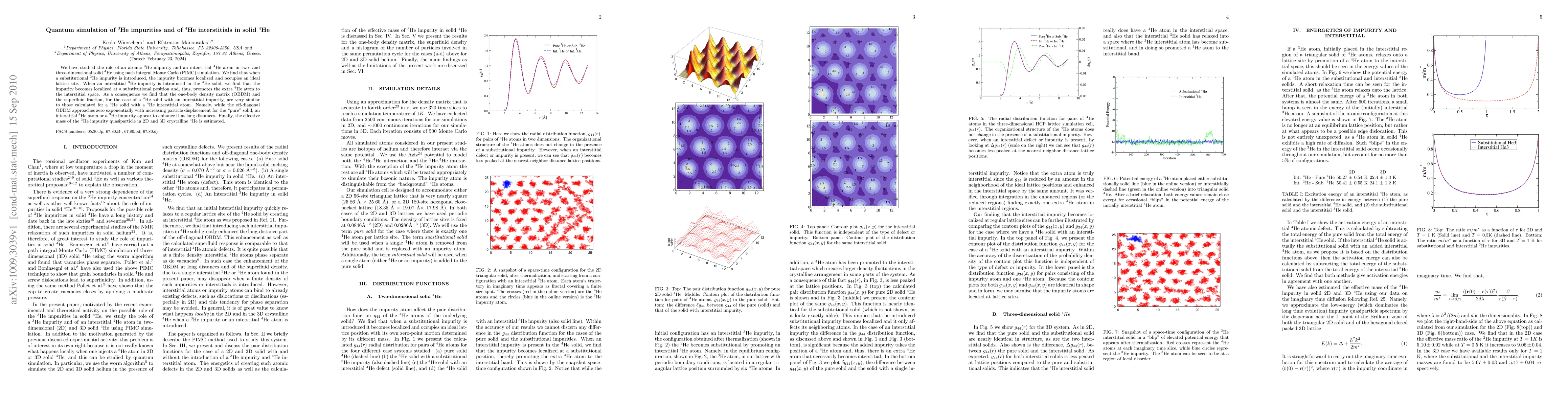 This paper uses path integral Monte Carlo simulations to study the behavior of 3He impurities and 4He interstitials in solid 4He, finding that 3He impurities localize in ideal lattice sites and interstitial 4He atoms promote additional 4He atoms to interstitial spaces, enhancing the superfluid properties.