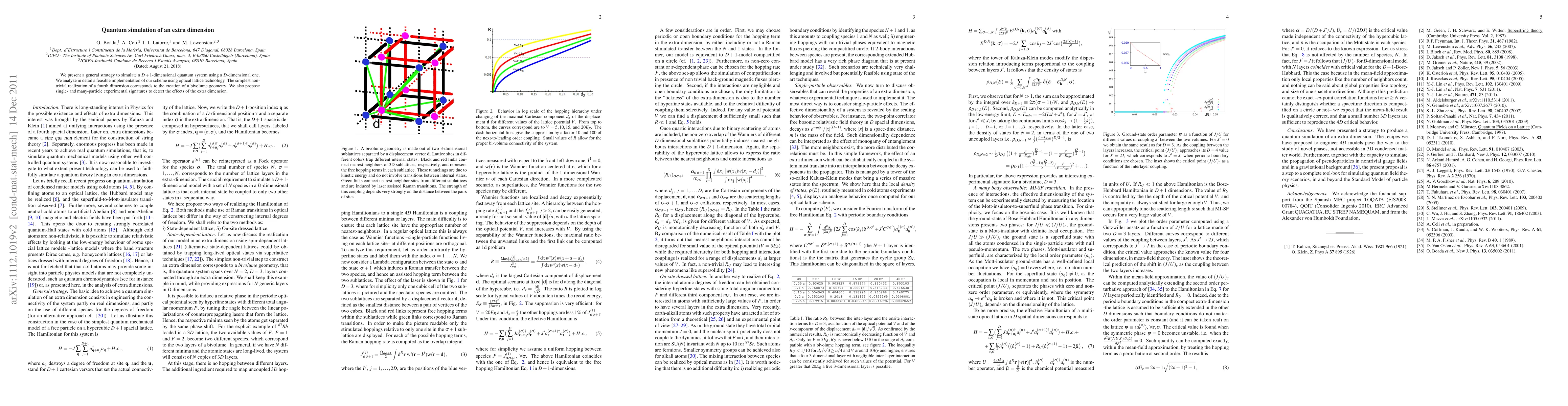 We present a general strategy to simulate a D+1-dimensional quantum system using a D-dimensional one. We analyze in detail a feasible implementation of our scheme using optical lattice technology. The simplest non-trivial realization of a fourth dimension corresponds to the creation of a bivolume geometry. We also propose single- and many-particle experimental signatures to detect the effects of the extra dimension.