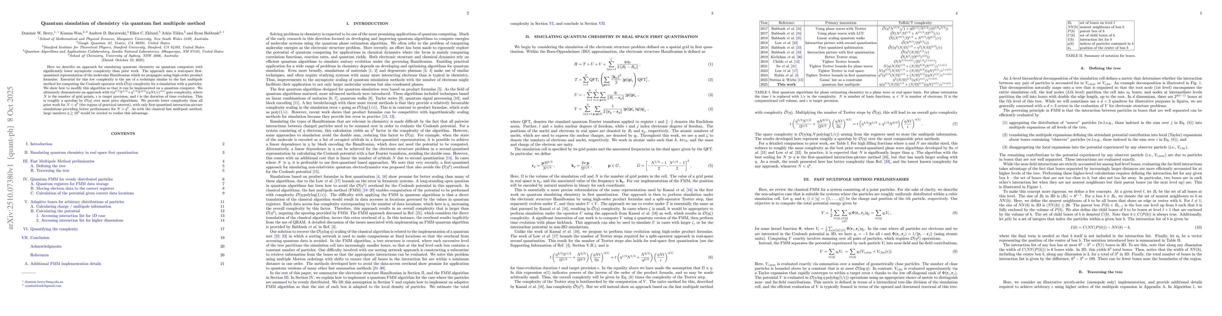 This research addresses a major bottleneck in quantum chemistry simulations by reducing the complexity of potential energy calculations from O(η²) to nearly linear, enabling more efficient quantum simulation of complex systems. It provides a framework for implementing FMM on quantum computers, which could significantly improve the scalability of quantum simulations.