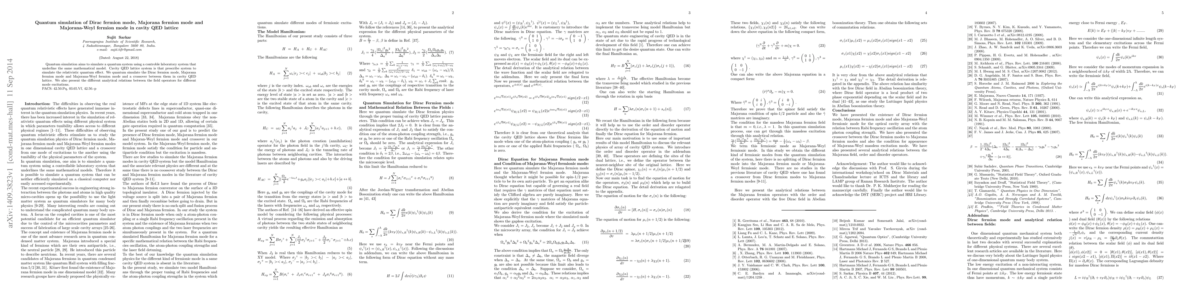 This paper presents quantum simulations of Dirac, Majorana, and Majorana-Weyl fermion modes in a cavity QED lattice system, demonstrating a crossover between these modes and providing analytical relations for their field operators. The study underscores the lattice's potential to model relativistic quantum effects.