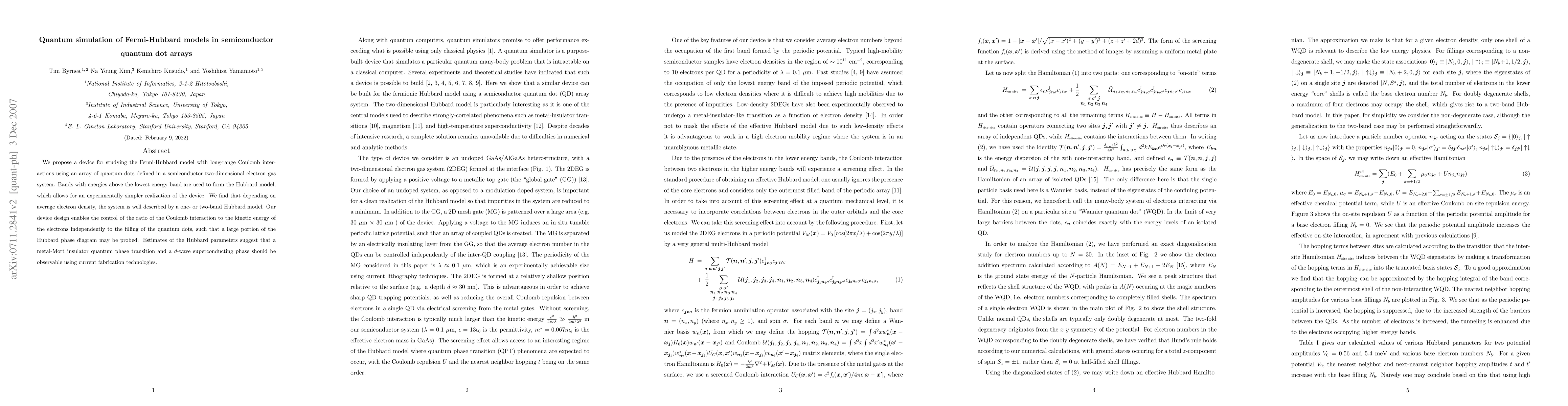 This paper proposes a semiconductor quantum dot array device to study the Fermi-Hubbard model, enabling control over the Coulomb interaction to kinetic energy ratio. It suggests that the system can exhibit a metal-Mott insulator transition and a d-wave superconducting phase, observable with current fabrication techniques.