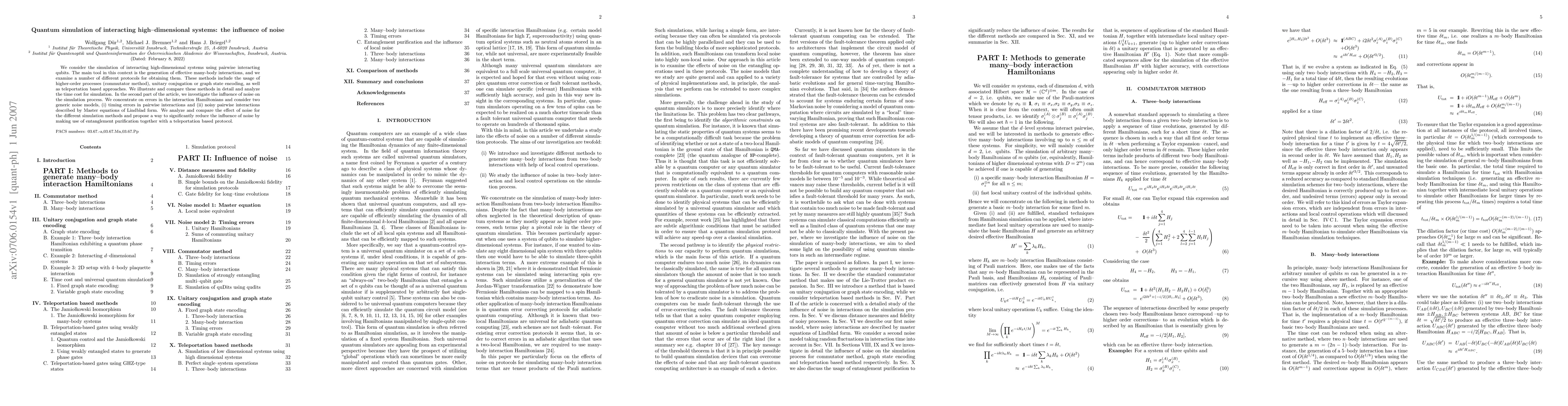 We consider the simulation of interacting high-dimensional systems using pairwise interacting qubits. The main tool in this context is the generation of effective many-body interactions, and we examine a number of different protocols for obtaining them. These methods include the usage of higher-order processes (commutator method), unitary conjugation or graph state encoding, as well as teleportation based approaches. We illustrate and compare these methods in detail and analyze the time cost for simulation. In the second part of the article, we investigate the influence of noise on the simulation process. We concentrate on errors in the interaction Hamiltonians and consider two generic noise models, (i) timing errors in pairwise interactions and (ii) noisy pairwise interactions described by Master equations of Lindblad form. We analyze and compare the effect of noise for the different simulation methods and propose a way to significantly reduce the influence of noise by making use of entanglement purification together with a teleportation based protocol.