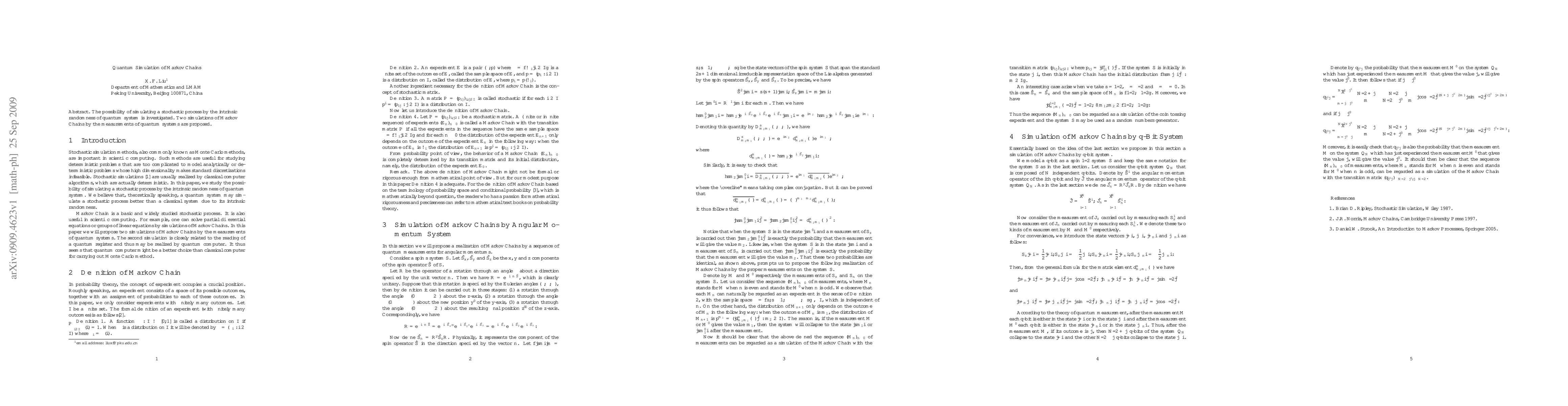 The possibility of simulating a stochastic process by the intrinsic randomness of quantum system is investigated. Two simulations of Markov Chains by the measurements of quantum systems are proposed.