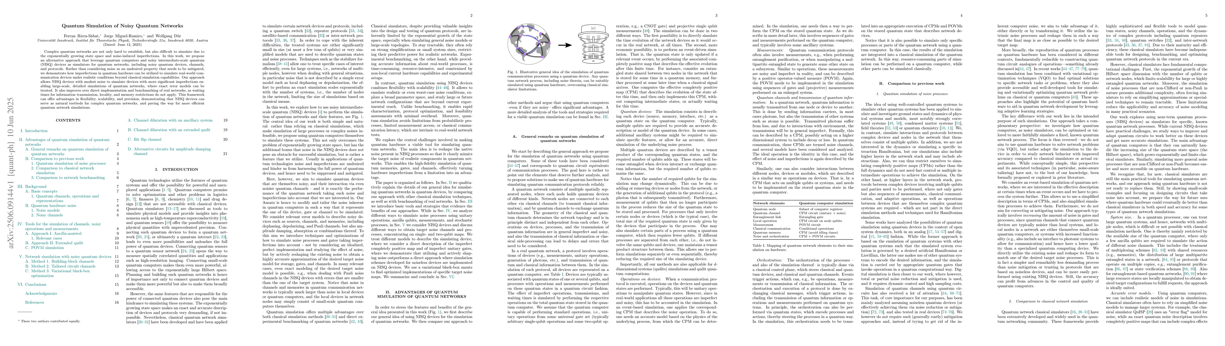 This work presents a unique combination of tailored noise approaches and quantum hardware-based simulation, offering a new perspective on network simulation and its potential applications.