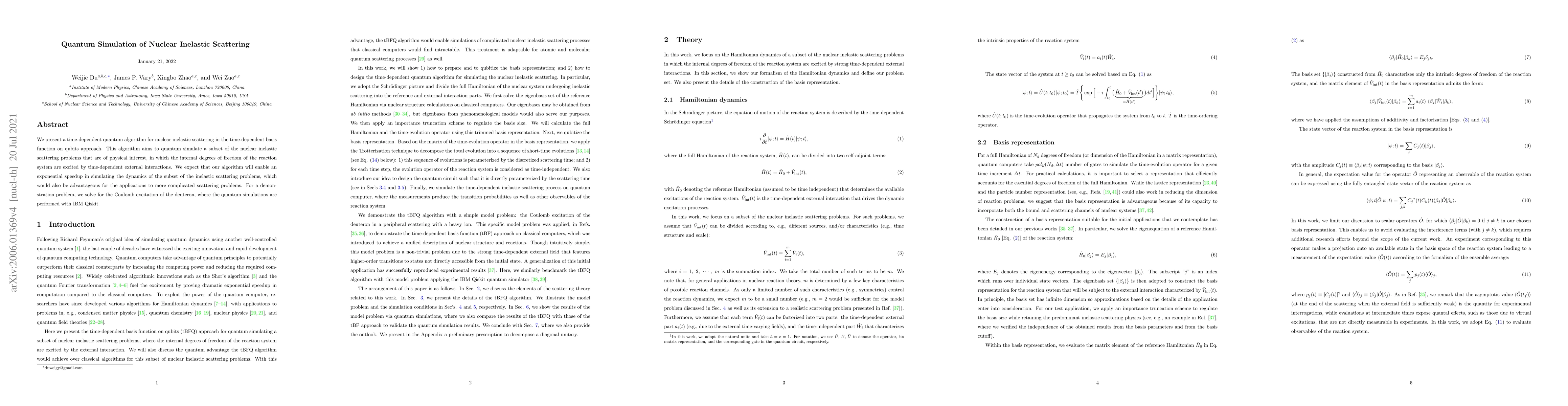 This paper introduces a quantum algorithm for simulating nuclear inelastic scattering, aiming for an exponential speedup over classical methods. The algorithm demonstrates its effectiveness by simulating Coulomb excitation in deuteron using IBM Qiskit.