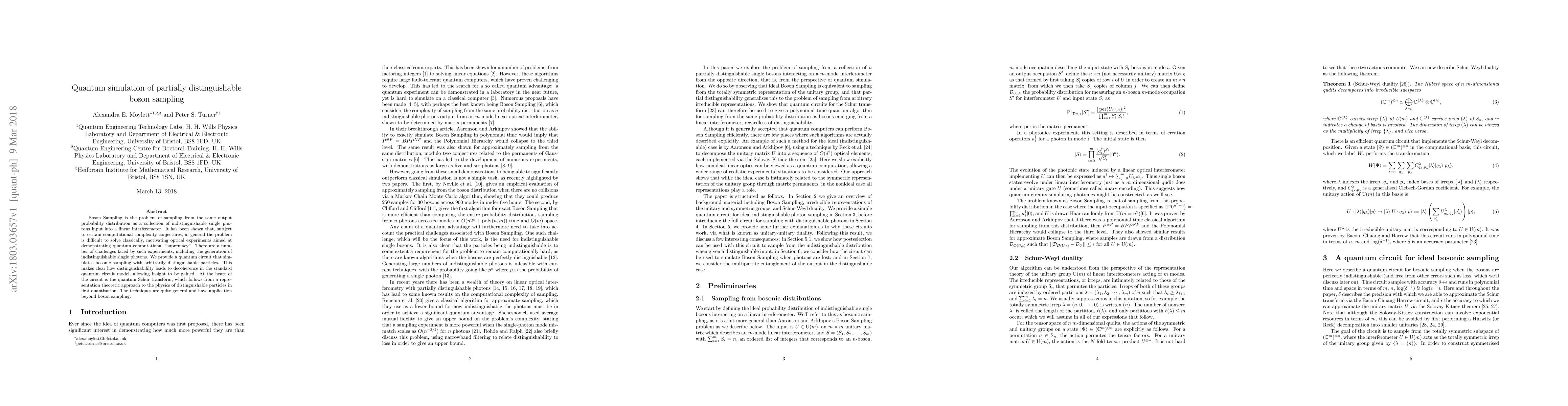This paper presents a quantum circuit for simulating boson sampling with distinguishable particles, highlighting the role of distinguishability in causing decoherence. The core technique involves the quantum Schur transform, offering insights into the physics of distinguishable particles and extending beyond boson sampling applications.
