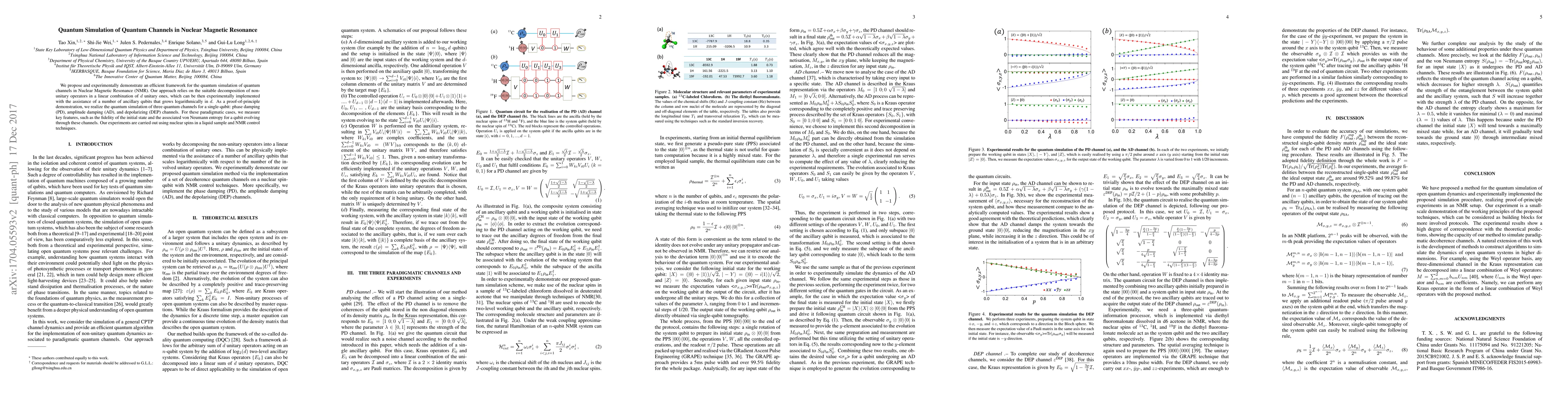 We propose and experimentally demonstrate an efficient framework for the quantum simulation of quantum channels in NMR. Our approach relies on the suitable decomposition of non-unitary operators in a linear combination of $d$ unitary ones, which can be then experimentally implemented with the assistance of a number of ancillary qubits that grows logarithmically in $d$. As a proof-of-principle demonstration, we realize the quantum simulation of three quantum channels for a single-qubit: phase damping (PD), amplitude damping (AD), and depolarizing (DEP) channels. For these paradigmatic cases, we measure key features, such as the fidelity of the initial state and the associated von Neuman entropy for a qubit evolving through these channels. Our experiments are carried out using nuclear spins in a liquid sample and NMR control techniques.