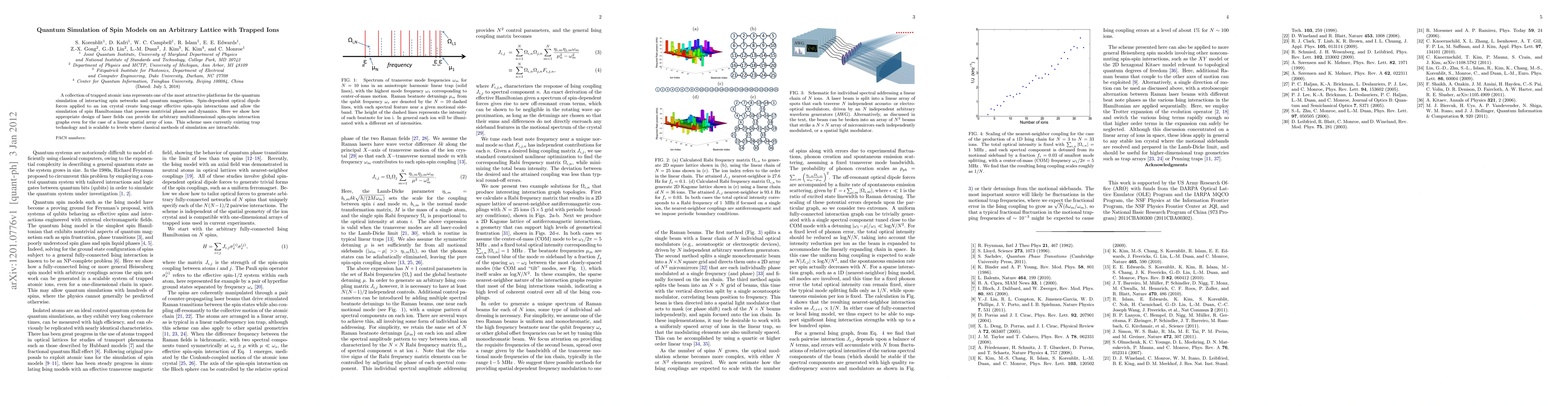 This paper demonstrates a method for simulating complex spin models on arbitrary lattices using trapped ions, leveraging spin-dependent optical dipole forces to create effective spin-spin interactions. The proposed scheme is scalable and utilizes existing trap technology, enabling simulations beyond classical computational limits.