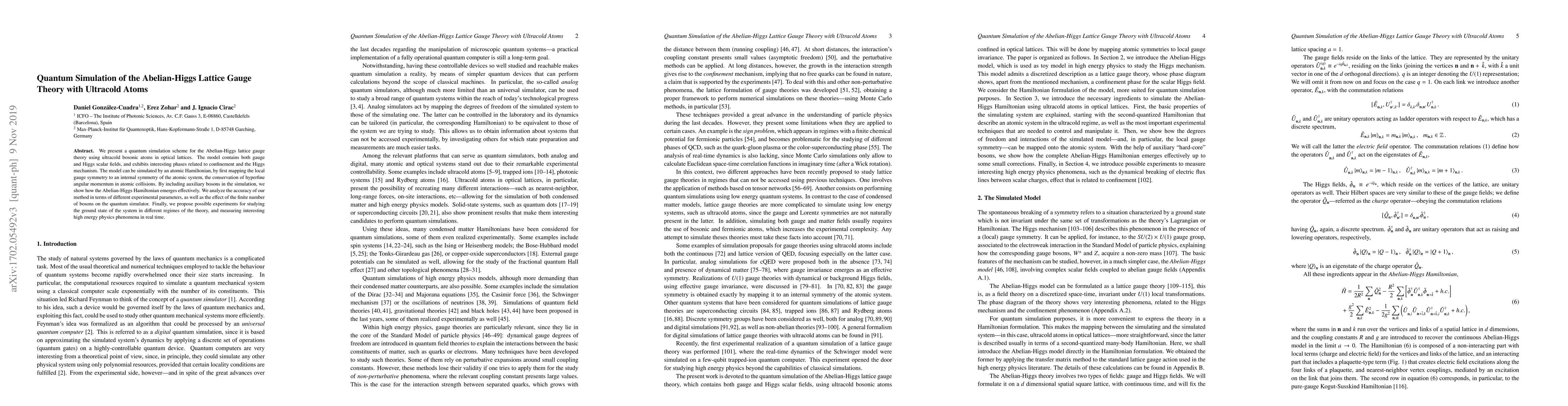 This paper proposes a quantum simulation method for the Abelian-Higgs lattice gauge theory using ultracold bosonic atoms in optical lattices, mapping gauge symmetry to atomic hyperfine states. The study analyzes the simulation's accuracy and suggests experiments to explore the system's ground state and high energy phenomena.