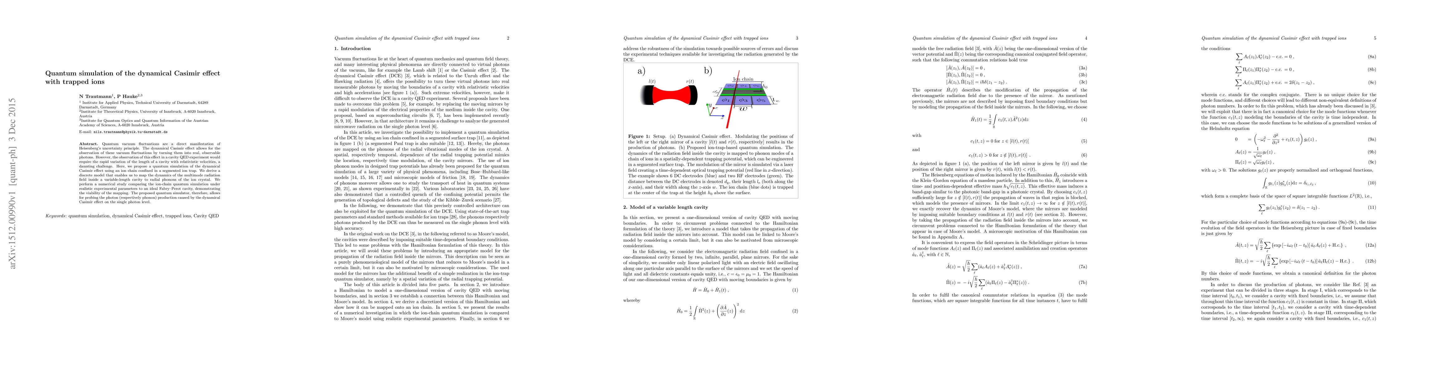 This paper proposes a quantum simulation of the dynamical Casimir effect using trapped ions in a segmented ion trap, mapping cavity dynamics to radial phonons. The study validates the feasibility of this simulation under realistic experimental conditions, enabling single-photon level observation of photon production.