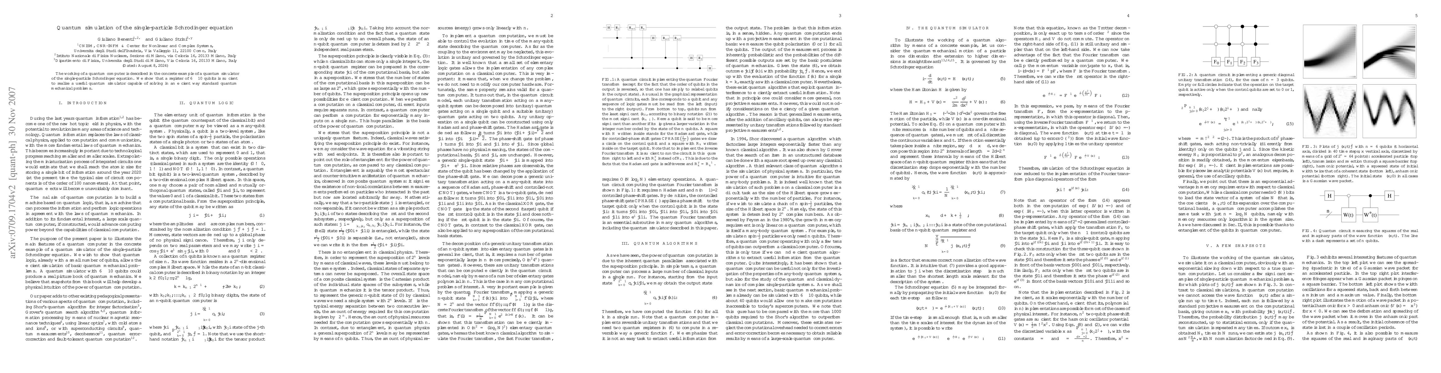 The working of a quantum computer is described in the concrete example of a quantum simulator of the single-particle Schrodinger equation. We show that a register of 6-10 qubits is sufficient to realize a useful quantum simulator capable of solving in an efficient way standard quantum mechanical problems.