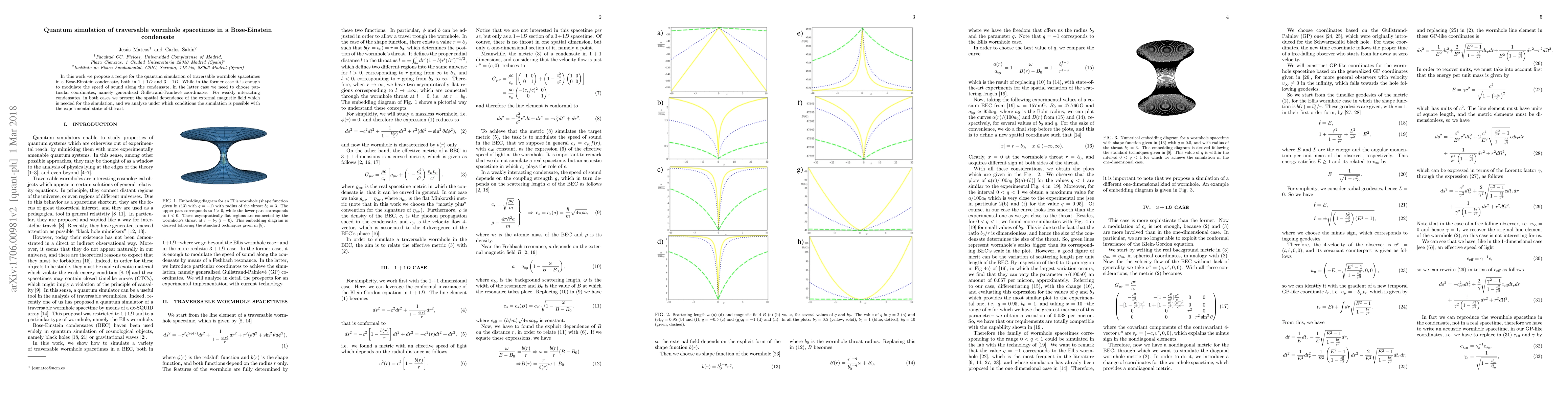 In this work we propose a recipe for the quantum simulation of traversable wormhole spacetimes in a Bose-Einstein condensate, both in $1+1D$ and $3+1D$. While in the former case it is enough to modulate the speed of sound along the condensate, in the latter case we need to choose particular coordinates, namely generalized Gullstrand-Painlev\'e coordinates. For weakly interacting condensates, in both cases we present the spatial dependence of the external magnetic field which is needed for the simulation, and we analyze under which conditions the simulation is possible with the experimental state-of-the-art.