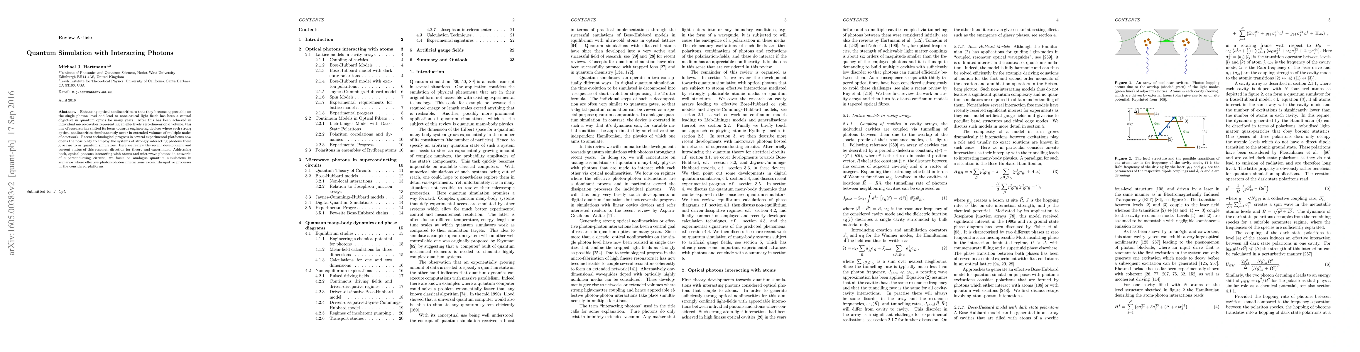 Enhancing optical nonlinearities so that they become appreciable on the single photon level and lead to nonclassical light fields has been a central objective in quantum optics for many years. After this has been achieved in individual micro-cavities representing an effectively zero-dimensional volume, this line of research has shifted its focus towards engineering devices where such strong optical nonlinearities simultaneously occur in extended volumes of multiple nodes of a network. Recent technological progress in several experimental platforms now opens the possibility to employ the systems of strongly interacting photons these give rise to as quantum simulators. Here we review the recent development and current status of this research direction for theory and experiment. Addressing both, optical photons interacting with atoms and microwave photons in networks of superconducting circuits, we focus on analogue quantum simulations in scenarios where effective photon-photon interactions exceed dissipative processes in the considered platforms.