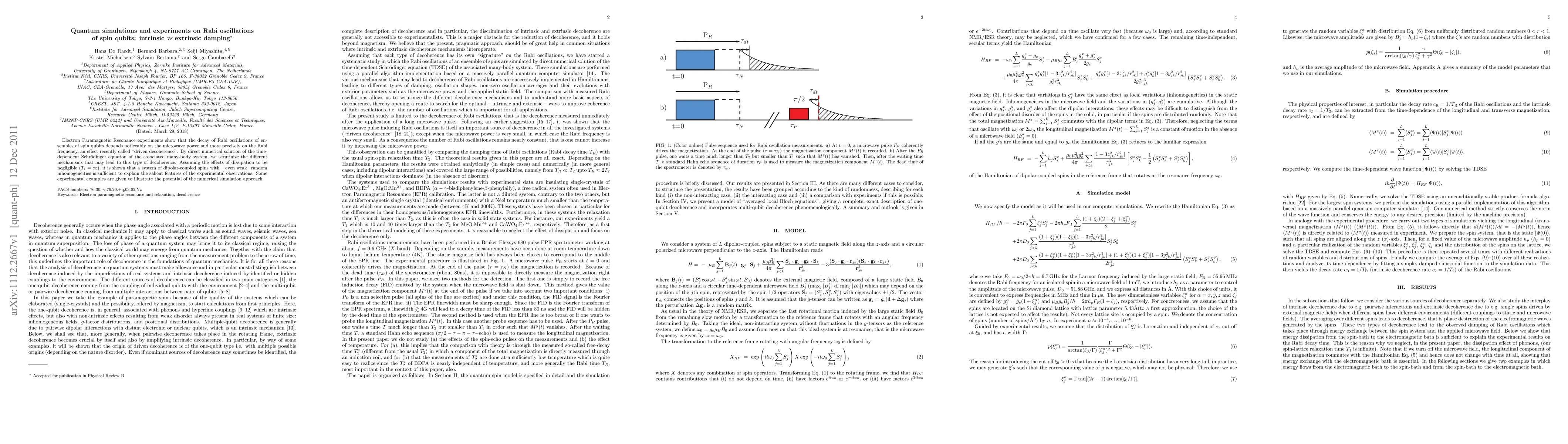 This paper investigates the decay of Rabi oscillations in spin qubits via Electron Paramagnetic Resonance experiments, attributing the observed "driven decoherence" to intrinsic damping from random inhomogeneities in the system. Numerical simulations of the time-dependent Schrödinger equation confirm that even weak inhomogeneities can explain the experimental observations.