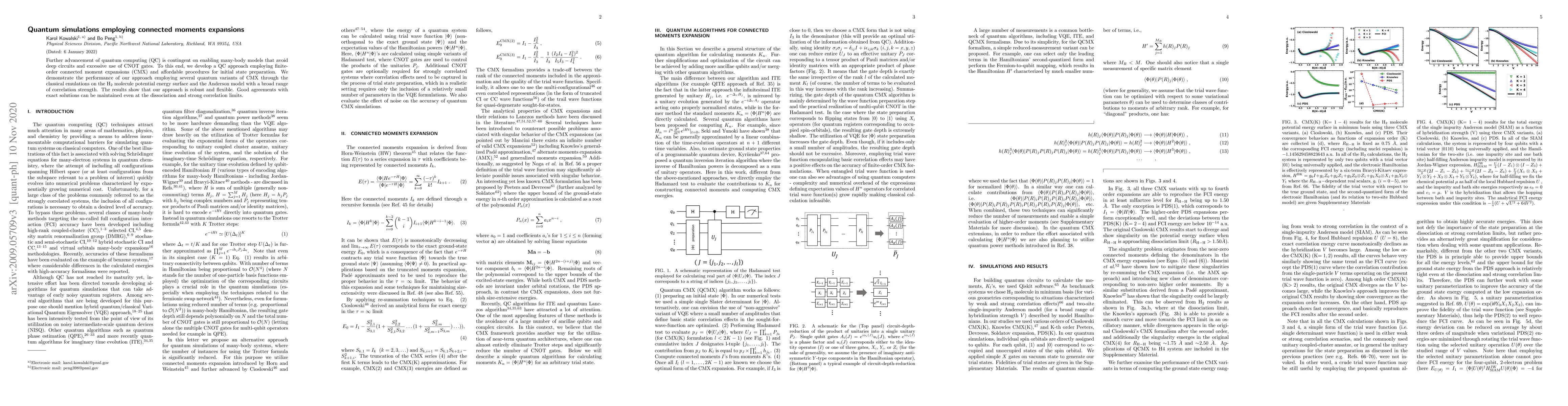 Further advancement of quantum computing (QC) is contingent on enabling many-body models that avoid deep circuits and excessive use of CNOT gates. To this end, we develop a QC approach employing finite-order connected moment expansions (CMX) and affordable procedures for initial state preparation. We demonstrate the performance of our approach employing several quantum variants of CMX through the classical emulations on the H2 molecule potential energy surface and the Anderson model with a broad range of correlation strength. The results show that our approach is robust and flexible. Good agreements with exact solutions can be maintained even at the dissociation and strong correlation limits.