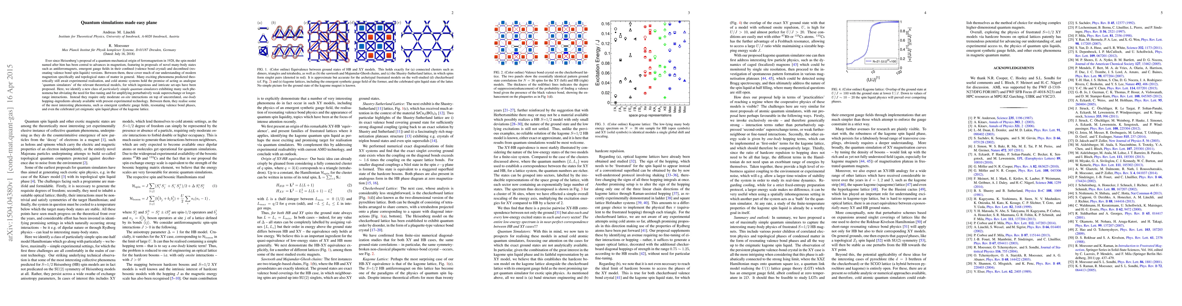 Ever since Heisenberg's proposal of a quantum-mechanical origin of ferromagnetism in 1928, the spin model named after him has been central to advances in magnetism, featuring in proposals of novel many-body states such as antiferromagnets, emergent gauge fields in their confined (valence bond crystal) and deconfined (resonating valence bond spin liquids) versions. Between them, these cover much of our understanding of modern magnetism specifically and topological states of matter in general. Many exciting phenomena predicted theoretically still await experimental realisation, and cold atomic systems hold the promise of acting as analogue 'quantum simulators' of the relevant theoretical models, for which ingenious and intricate set-ups have been proposed. Here, we identify a new class of particularly simple quantum simulators exhibiting many such phenomena but obviating the need for fine-tuning and for amplifying perturbatively weak superexchange or longer-range interactions. Instead they require only moderate on-site interactions on top of uncorrelated, one-body hopping--ingredients already available with present experimental technology. Between them, they realise some of the most interesting phenomena, such as emergent synthetic gauge fields, resonating valence bond phases, and even the celebrated yet enigmatic spin liquid phase of the kagome lattice.