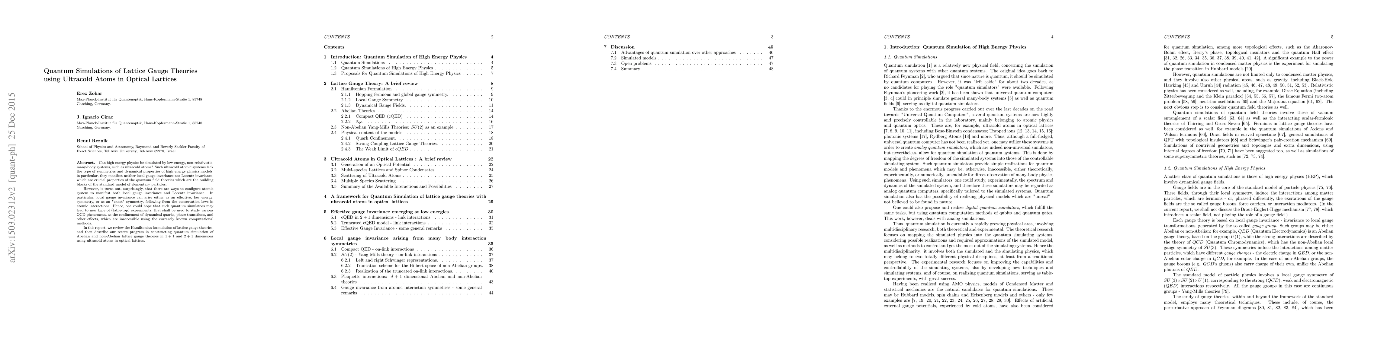 Can high energy physics be simulated by low-energy, non-relativistic, many-body systems, such as ultracold atoms? Such ultracold atomic systems lack the type of symmetries and dynamical properties of high energy physics models: in particular, they manifest neither local gauge invariance nor Lorentz invariance, which are crucial properties of the quantum field theories which are the building blocks of the standard model of elementary particles. However, it turns out, surprisingly, that there are ways to configure atomic system to manifest both local gauge invariance and Lorentz invariance. In particular, local gauge invariance can arise either as an effective, low energy, symmetry, or as an "exact" symmetry, following from the conservation laws in atomic interactions. Hence, one could hope that such quantum simulators may lead to new type of (table-top) experiments, that shall be used to study various QCD phenomena, as the confinement of dynamical quarks, phase transitions, and other effects, which are inaccessible using the currently known computational methods. In this report, we review the Hamiltonian formulation of lattice gauge theories, and then describe our recent progress in constructing quantum simulation of Abelian and non-Abelian lattice gauge theories in 1+1 and 2+1 dimensions using ultracold atoms in optical lattices.