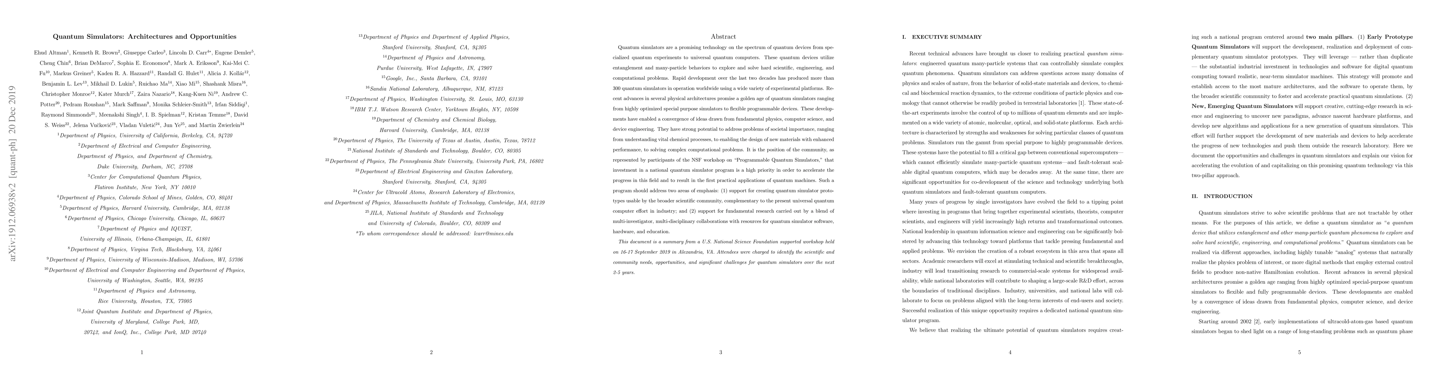 This paper discusses the rapid development of quantum simulators, highlighting their potential to solve complex scientific and computational problems. It emphasizes the need for a national quantum simulator program to accelerate progress, focusing on creating usable prototypes and supporting interdisciplinary research collaborations.