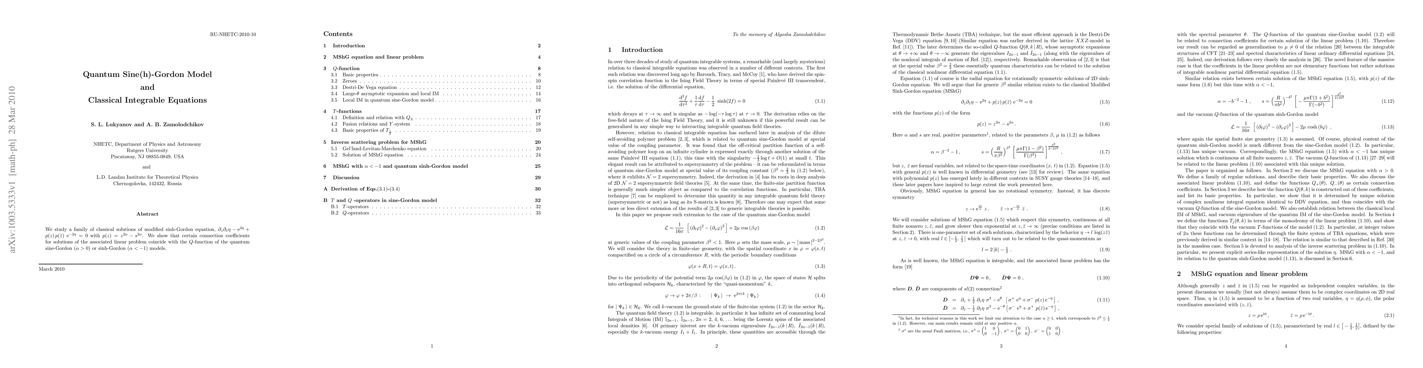 We study a family of classical solutions of modified sinh-Gordon equation, $\partial_z\partial_{{\bar z}} \eta-\re^{2\eta}+p(z)\,p({\bar z})\ \re^{-2\eta}=0$ with $p(z)=z^{2\alpha}-s^{2\alpha}$. We show that certain connection coefficients for solutions of the associated linear problem coincide with the $Q$-function of the quantum sine-Gordon $(\alpha>0)$ or sinh-Gordon $(\alpha<-1)$ models.