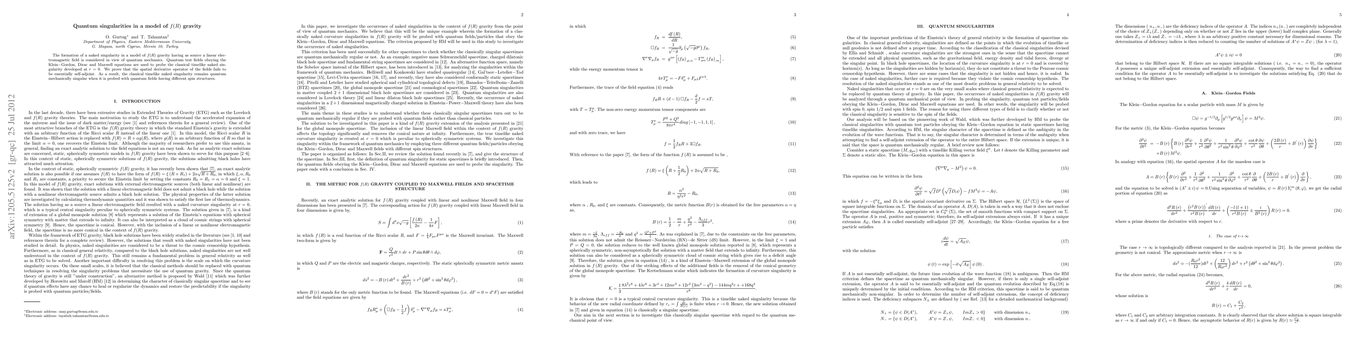 The formation of a naked singularity in a model of f(R) gravity having as source a linear electromagnetic field is considered in view of quantum mechanics. Quantum test fields obeying the Klein-Gordon, Dirac and Maxwell equations are used to probe the classical timelike naked singularity developed at r=0. We prove that the spatial derivative operator of the fields fails to be essentially self-adjoint. As a result, the classical timelike naked singularity remains quantum mechanically singular when it is probed with quantum fields having different spin structures.