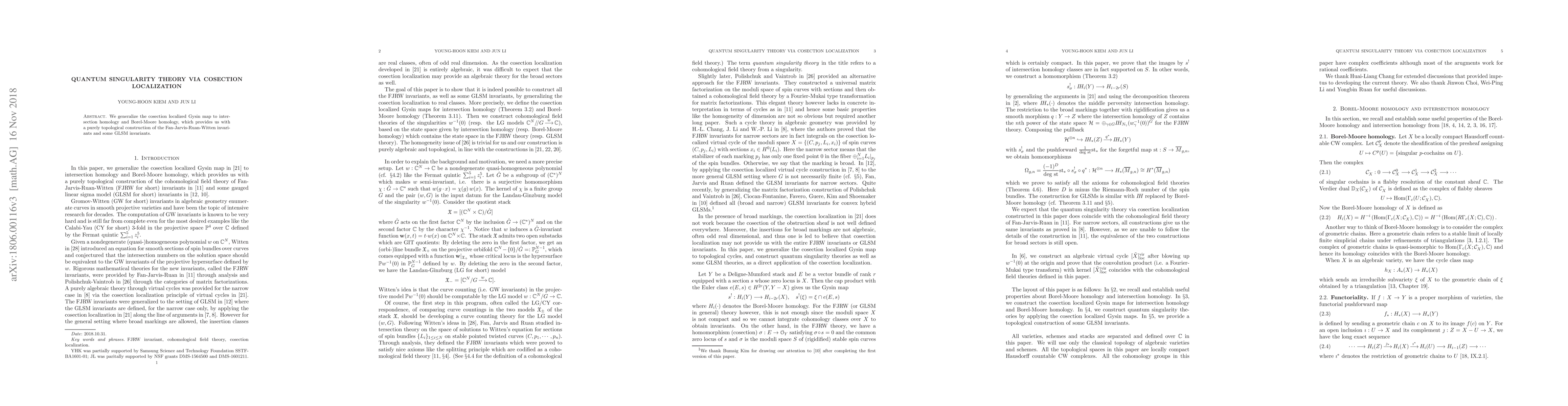 Researchers developed a topological method to calculate Fan-Jarvis-Ruan-Witten invariants using intersection homology and Borel-Moore homology, providing a purely topological approach to GLSM invariants.