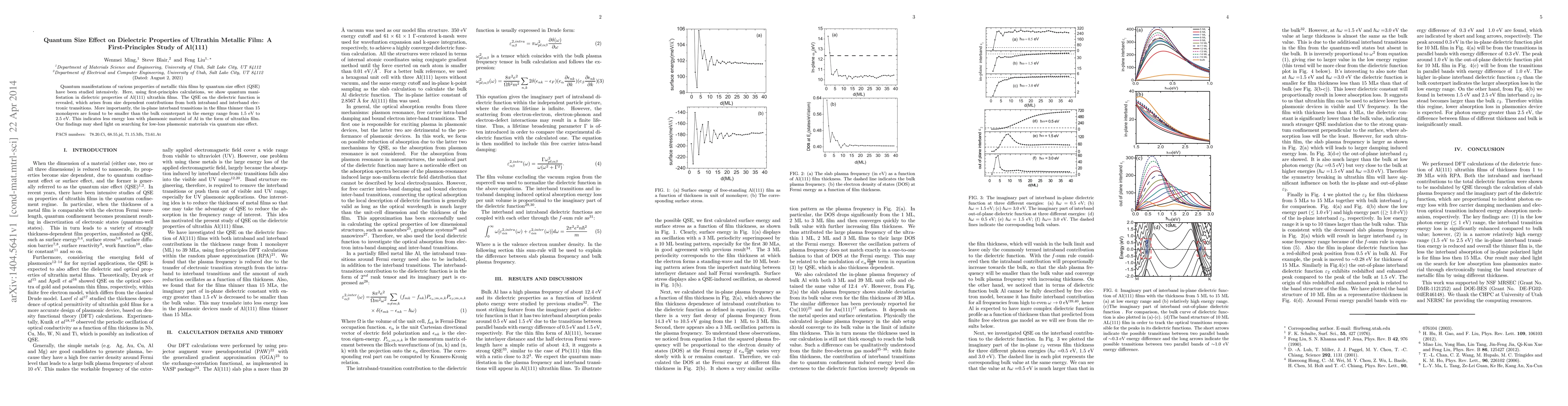 This study uses first-principles calculations to reveal quantum size effects on the dielectric properties of ultrathin Al(111) films, showing that in-plane interband transitions are reduced in films thinner than 15 monolayers, indicating lower energy loss and potential for low-loss plasmonic materials.