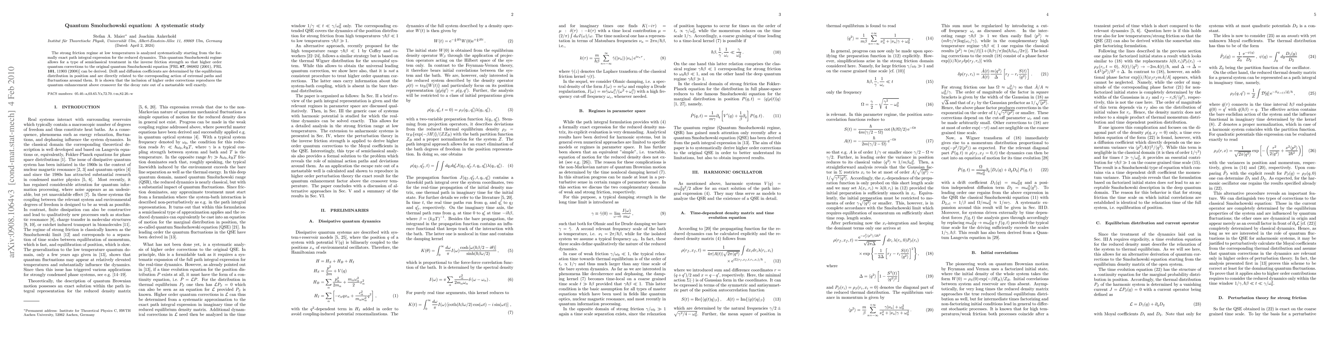 The strong friction regime at low temperatures is analyzed systematically starting from the formally exact path integral expression for the reduced dynamics. This quantum Smoluchowski regime allows for a type of semiclassical treatment in the inverse friction strength so that higher order quantum corrections to the original quantum Smoluchowski equation [PRL 87, 086802 (2001), PRL 101, 11903 (2008)] can be derived. Drift and diffusion coefficients are determined by the equilibrium distribution in position and are directly related to the corresponding action of extremal paths and fluctuations around them. It is shown that the inclusion of higher order corrections reproduces the quantum enhancement above crossover for the decay rate out of a metastable well exactly.