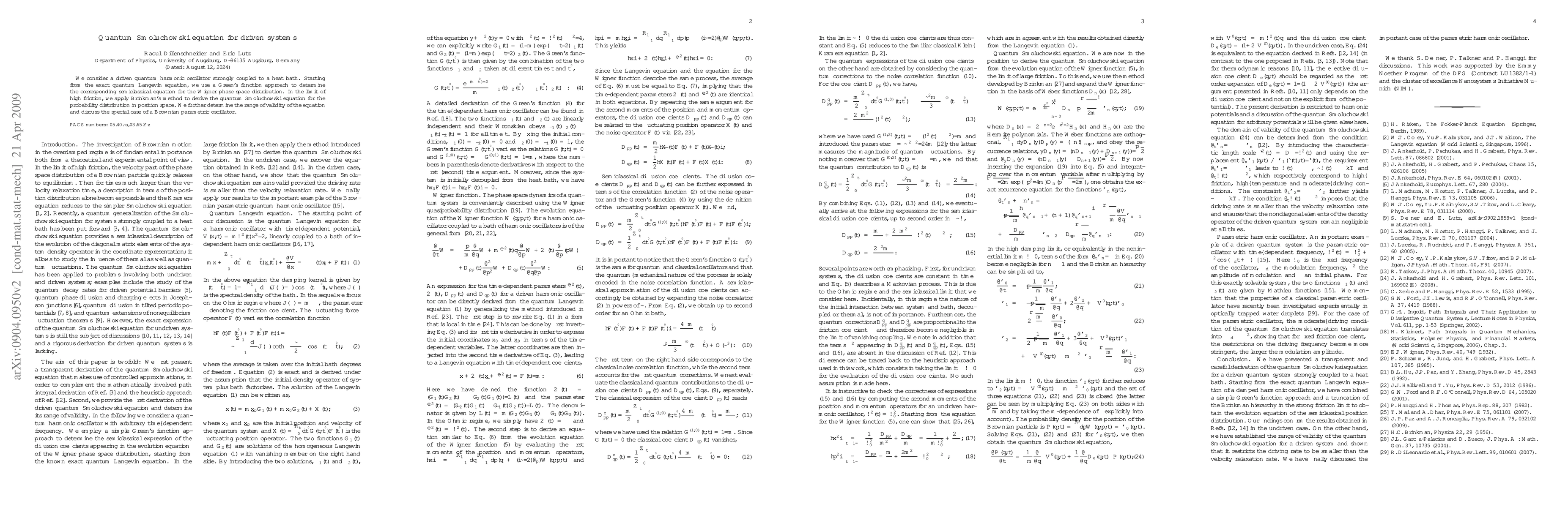 This paper derives the quantum Smoluchowski equation for a driven quantum harmonic oscillator strongly coupled to a heat bath, using a Green's function approach and Brinkman's method in the high friction limit. It also examines the validity of the equation and explores its application to a Brownian parametric oscillator.