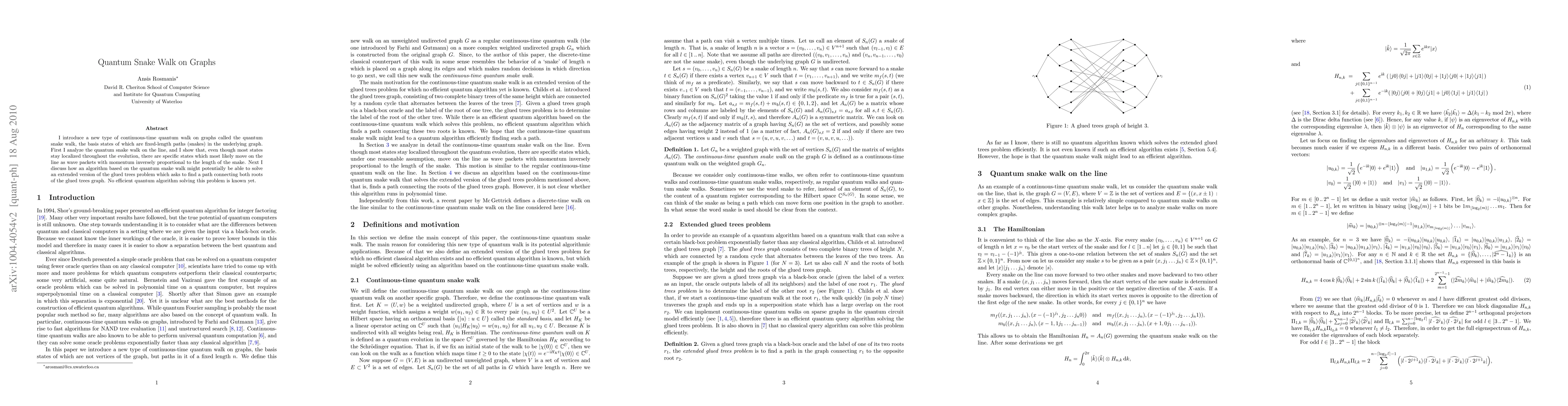This paper introduces a novel quantum snake walk on graphs, where states are fixed-length paths. It shows that while most states remain localized, specific states exhibit wave packet behavior, and proposes a potential quantum algorithm for solving the glued trees problem, for which no efficient quantum solution exists.