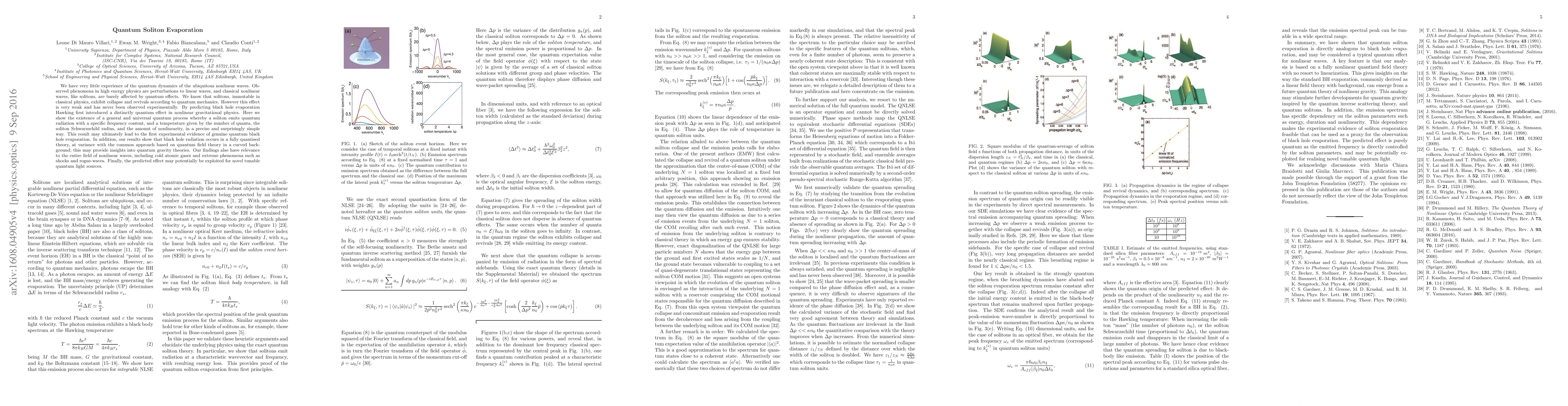 This paper predicts a universal quantum process where solitons emit radiation with specific frequency content, potentially leading to experimental evidence of black hole evaporation and novel tunable quantum light sources.