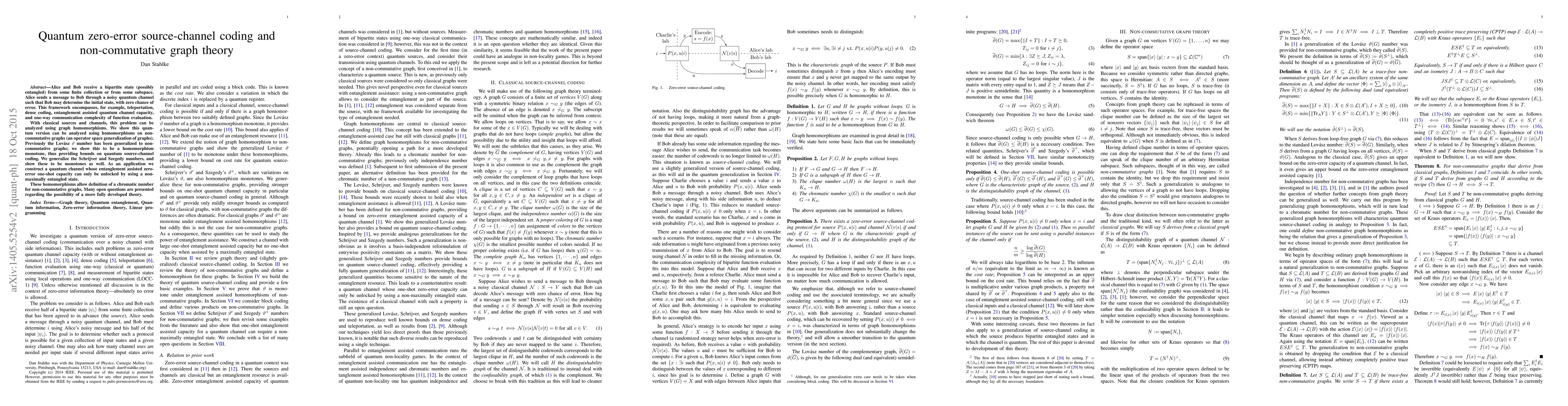 This paper explores quantum source-channel coding using non-commutative graph theory, demonstrating that quantum communication tasks can be analyzed via homomorphisms on non-commutative graphs. It generalizes classical graph theory concepts and presents new bounds on quantum capacities through these novel mathematical tools.