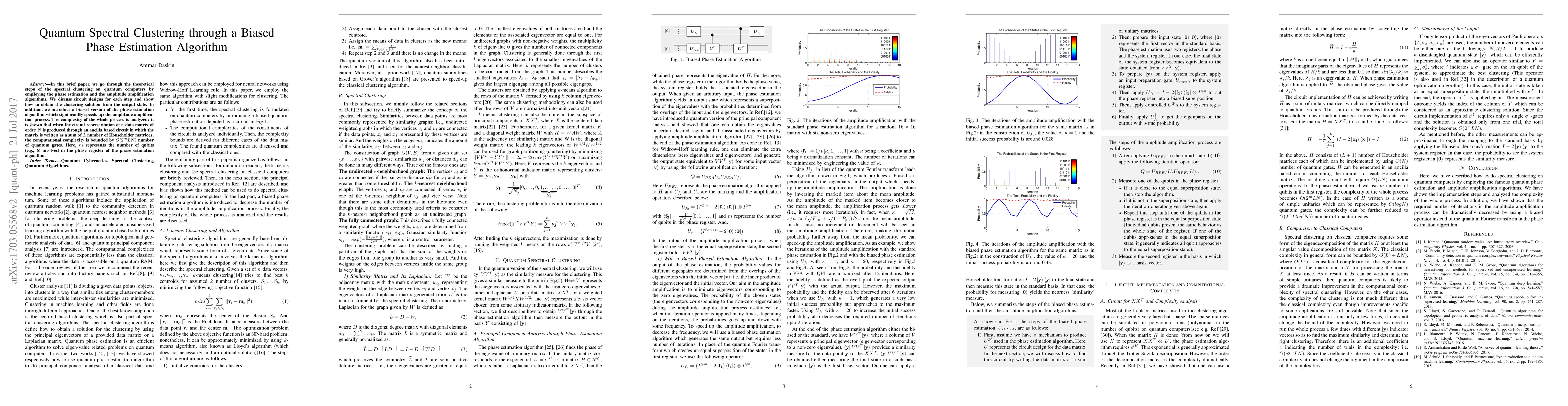 Researchers develop a quantum algorithm for spectral clustering that significantly reduces computational complexity using a biased phase estimation algorithm.