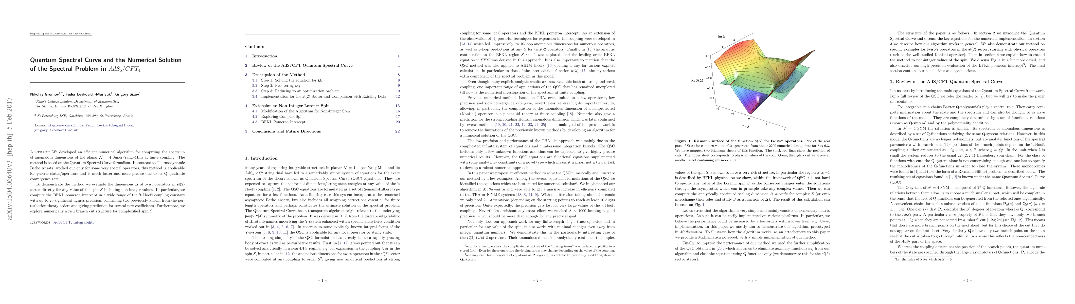 We developed an efficient numerical algorithm for computing the spectrum of anomalous dimensions of the planar ${\cal N}=4$ Super-Yang--Mills at finite coupling. The method is based on the Quantum Spectral Curve formalism. In contrast to Thermodynamic Bethe Ansatz, worked out only for some very special operators, this method is applicable for generic states/operators and is much faster and precise due to its Q-quadratic convergence rate. To demonstrate the method we evaluate the dimensions $\Delta$ of twist operators in $sl(2)$ sector directly for any value of the spin $S$ including non-integer values. In particular, we compute the BFKL pomeron intercept in a wide range of the 't Hooft coupling constant with up to $20$ significant figures precision, confirming two previously known from the perturbation theory orders and giving prediction for several new coefficients. Furthermore, we explore numerically a rich branch cut structure for complexified spin $S$.
