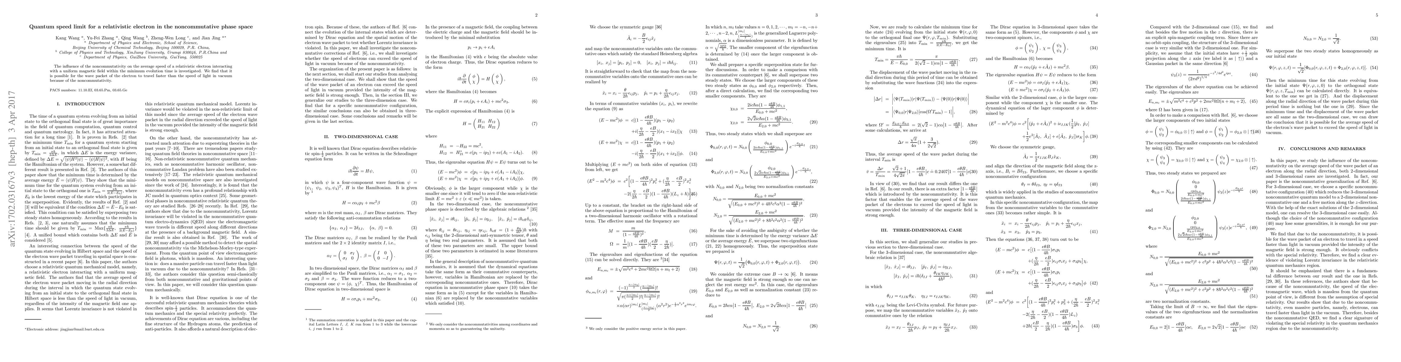 Researchers found that noncommutativity in phase space allows a relativistic electron to travel faster than light speed, violating Lorentz invariance in quantum mechanics.