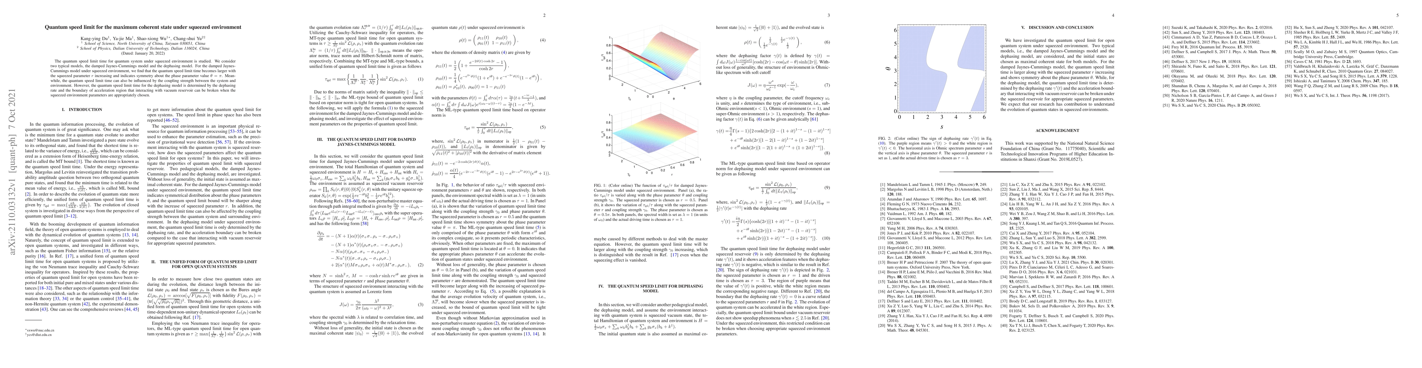 This paper investigates the quantum speed limit time for quantum systems in squeezed environments, focusing on the damped Jaynes-Cummings model and the dephasing model. The study finds that the quantum speed limit time increases with the squeezed parameter and is influenced by the system-environment coupling strength in the damped Jaynes-Cummings model, while the dephasing model's limit is determined by the dephasing rate and can be altered by appropriate squeezed environment parameters.