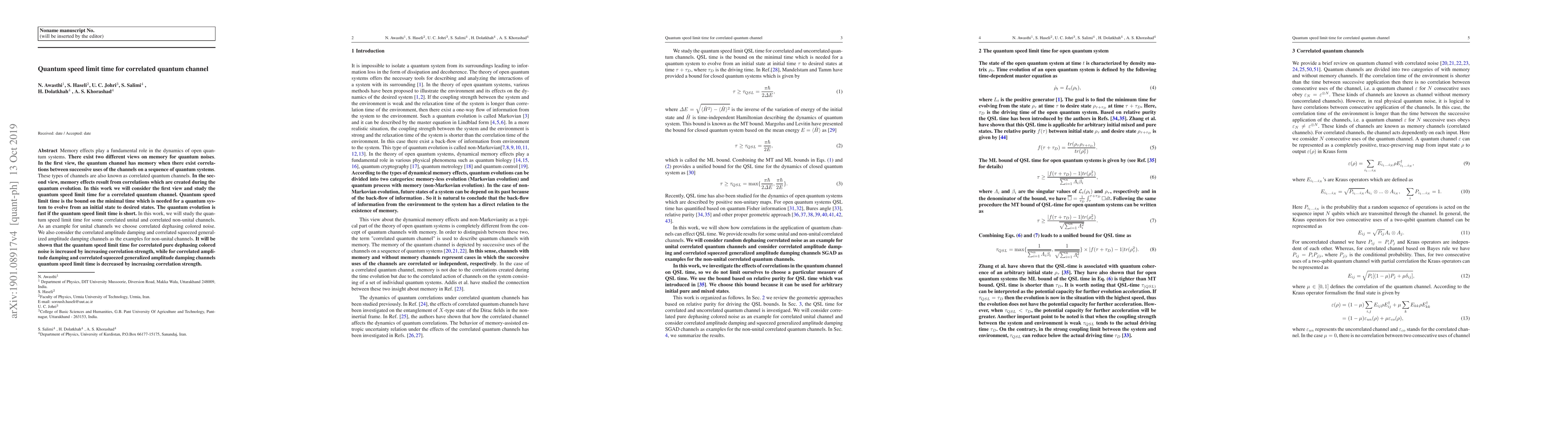 Memory effects play a fundamental role in the dynamics of open quantum systems. There exist two different views on memory for quantum noises. In the first view, the quantum channel has memory when there exist correlations between successive uses of the channels on a sequence of quantum systems. These types of channels are also known as correlated quantum channels. In the second view, memory effects result from correlations which are created during the quantum evolution. In this work we will consider the first view and study the quantum speed limit time for a correlated quantum channel. Quantum speed limit time is the bound on the minimal time which is needed for a quantum system to evolve from an initial state to desired states. The quantum evolution is fast if the quantum speed limit time is short. In this work, we will study the quantum speed limit time for some correlated unital and correlated non-unital channels. As an example for unital channels we choose correlated dephasing colored noise. We also consider the correlated amplitude damping and correlated squeezed generalized amplitude damping channels as the examples for non-unital channels. It will be shown that the quantum speed limit time for correlated pure dephasing colored noise is increased by increasing correlation strength, while for correlated amplitude damping and correlated squeezed generalized amplitude damping channels quantum speed limit time is decreased by increasing correlation strength.