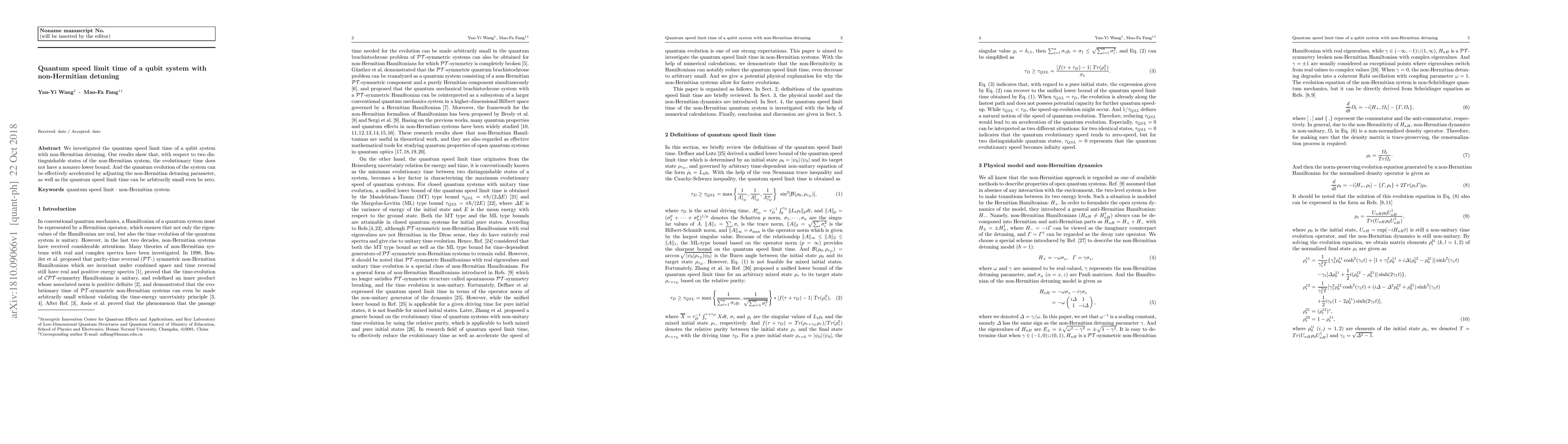 This work is novel in demonstrating that non-Hermitian systems can achieve arbitrary small evolutionary times, challenging traditional quantum mechanics' constraints and offering new perspectives on quantum evolution speed.