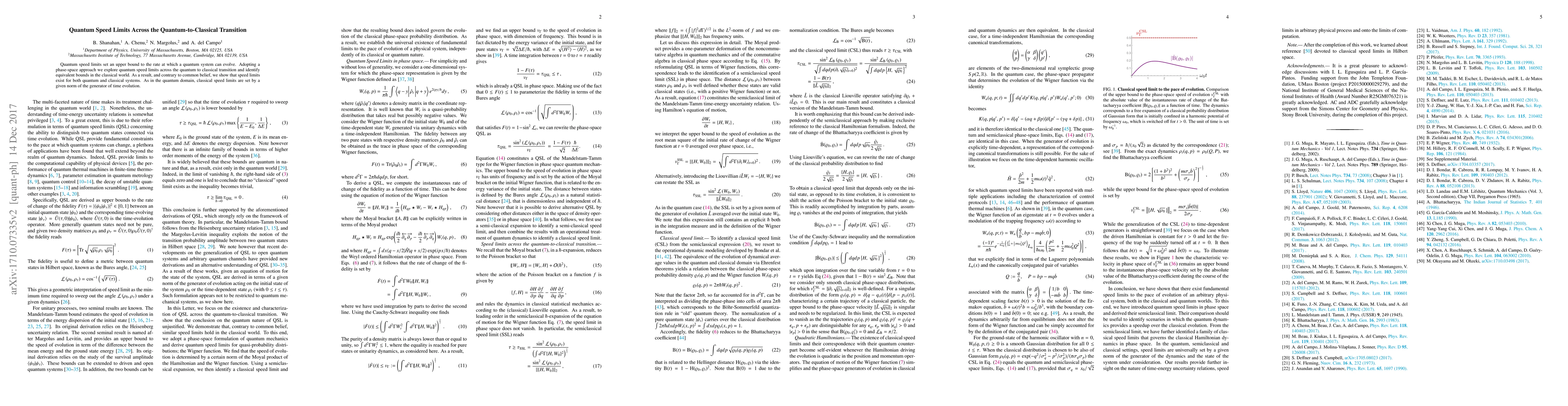 This paper investigates quantum speed limits, demonstrating that they apply universally across the quantum-to-classical transition. The study reveals that classical systems also exhibit speed limits, governed by the norm of their time evolution generator, contrary to previous assumptions.