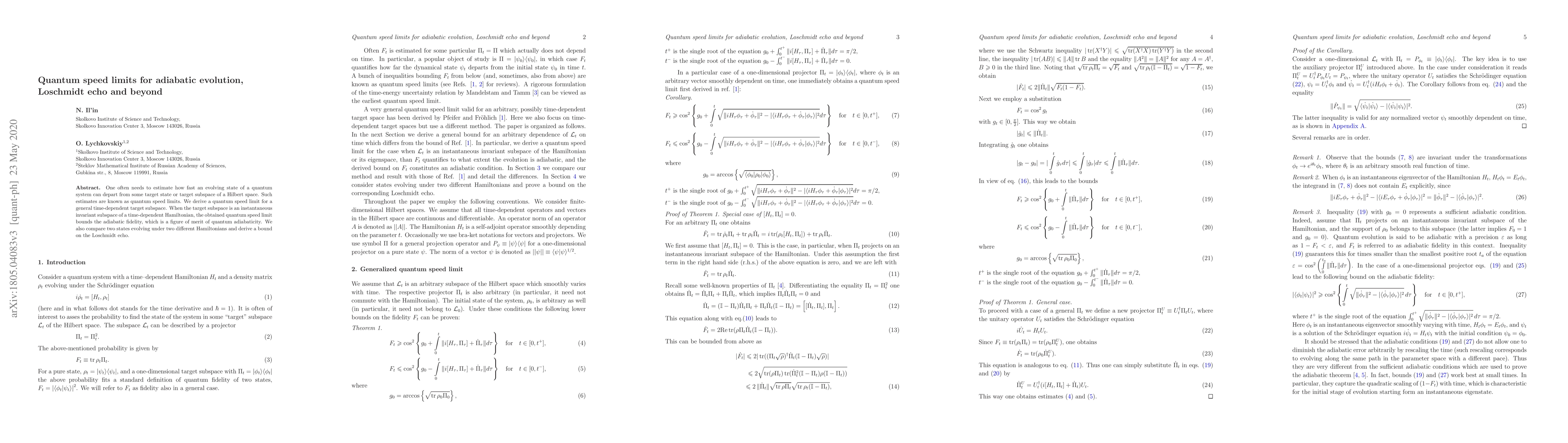 This paper derives a quantum speed limit for time-dependent target subspaces, showing its connection to adiabatic fidelity. It also establishes a bound on the Loschmidt echo when comparing states evolving under different Hamiltonians.