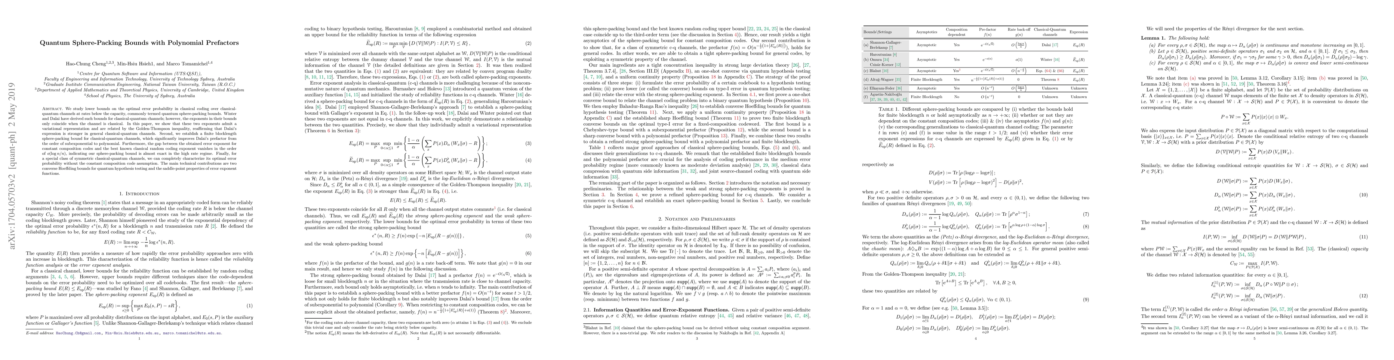 This paper improves classical-quantum channel coding bounds by demonstrating polynomial prefactors in sphere-packing bounds, showing that these bounds are almost exact in high rate regimes and resolving discrepancies in previous exponential bounds. The key technical contributions involve new converse Hoeffding bounds and saddle-point properties of error exponent functions.